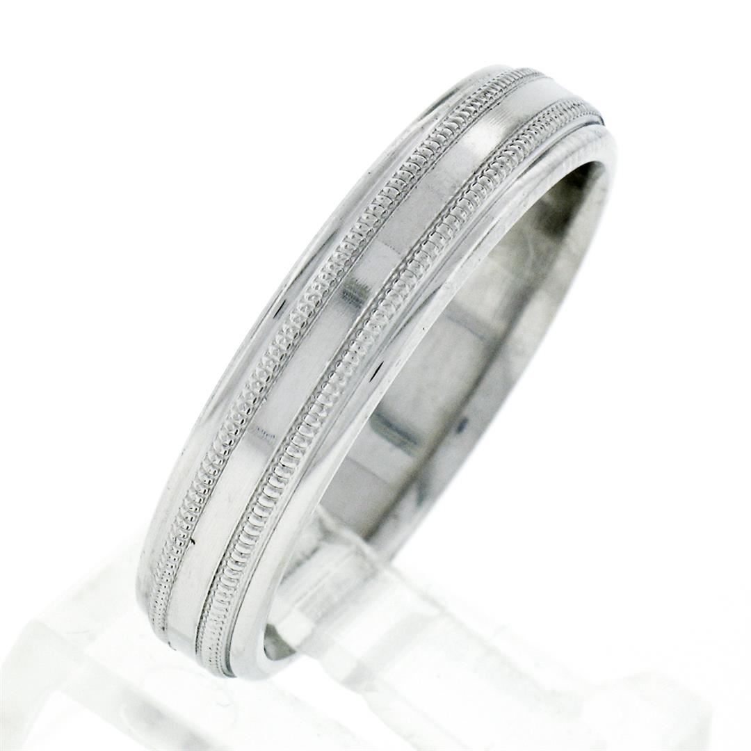 An estate solid platinum dual milgrain band ring. The ring is size 11.0, weighs a total of 11.40 grams, and measures 5.0mm wide.