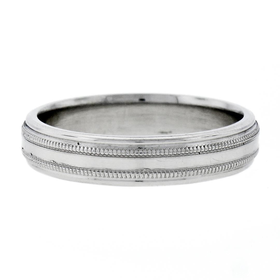 An estate solid platinum dual milgrain band ring. The ring is size 11.0, weighs a total of 11.40 grams, and measures 5.0mm wide.