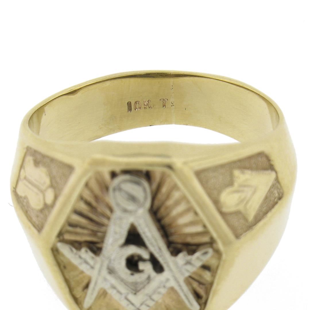 Men's Vintage Solid 10K Yellow & White Gold Detailed Masonic Wide Band Ring