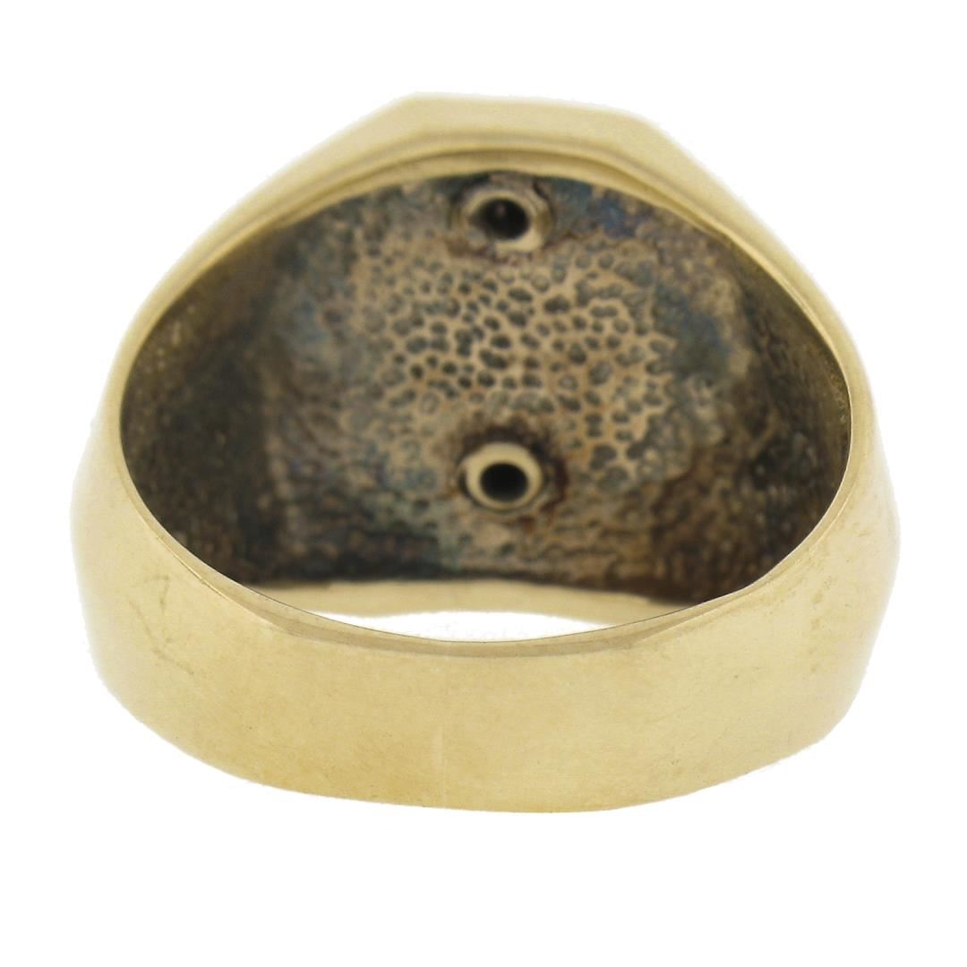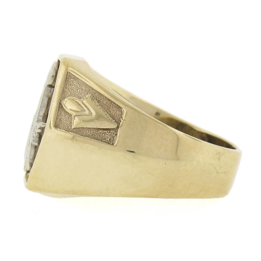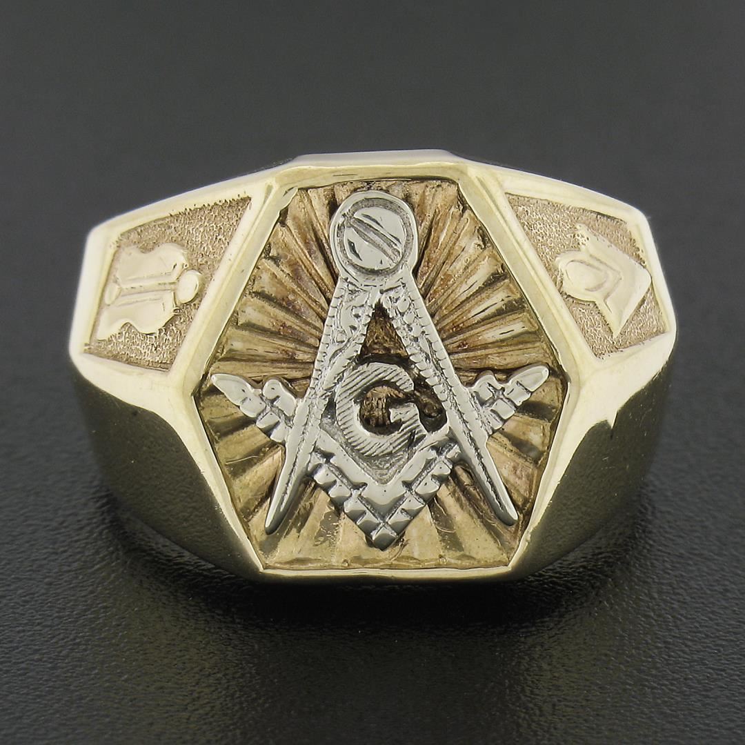 Men's Vintage Solid 10K Yellow & White Gold Detailed Masonic Wide Band Ring