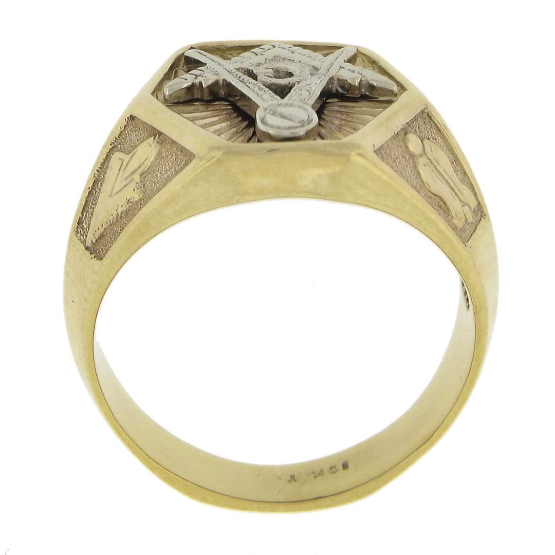 Men's Vintage Solid 10K Yellow & White Gold Detailed Masonic Wide Band Ring