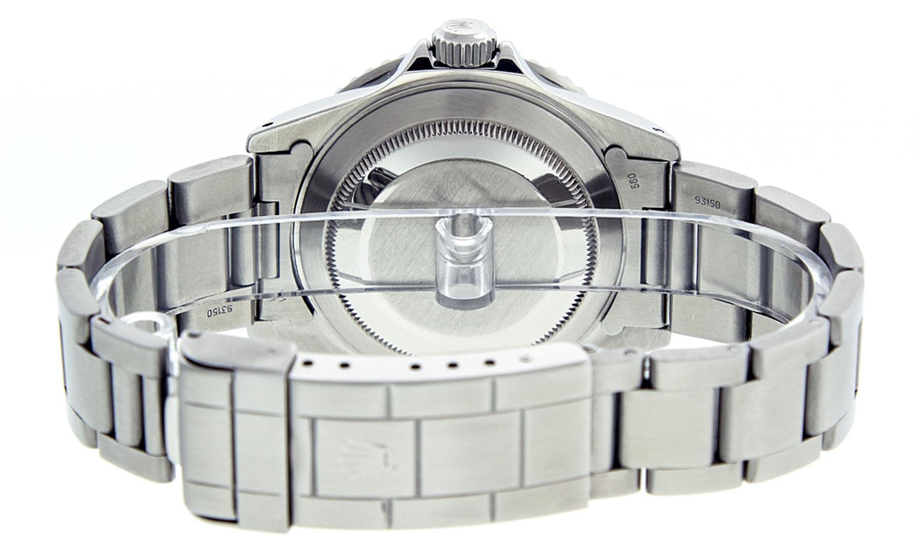 One Mens Rolex Submariner With Date Polished, Serviced & Electronically Tested, Stainless Steel Case:41mm, Stainless Steel Crown, Custom Bezel: Stainless Steel Rotatable Bezel With Custom Green Insert. Crystal: Synthetic Sapphire Cyclops Lens. Movement: Automatic Winding Movement Caliber 3135. Custom Dial: Green Diamond 8 + 2, Diamond Count: 8 Diamonds + 2 Baguettes In Dial, Color: G To H, Clarity: SI-VS. Date Window: 3 O'Clock Position Date Display, Model: Submariner 16610, Quickset, Condition: G-6 Extra Fine. Bracelet:Stainless Steel Oyster. Bright Polish & Satin Finish. 7.0 Inch Length, Adjustable. Standard Clasp, With Rolex Logo.