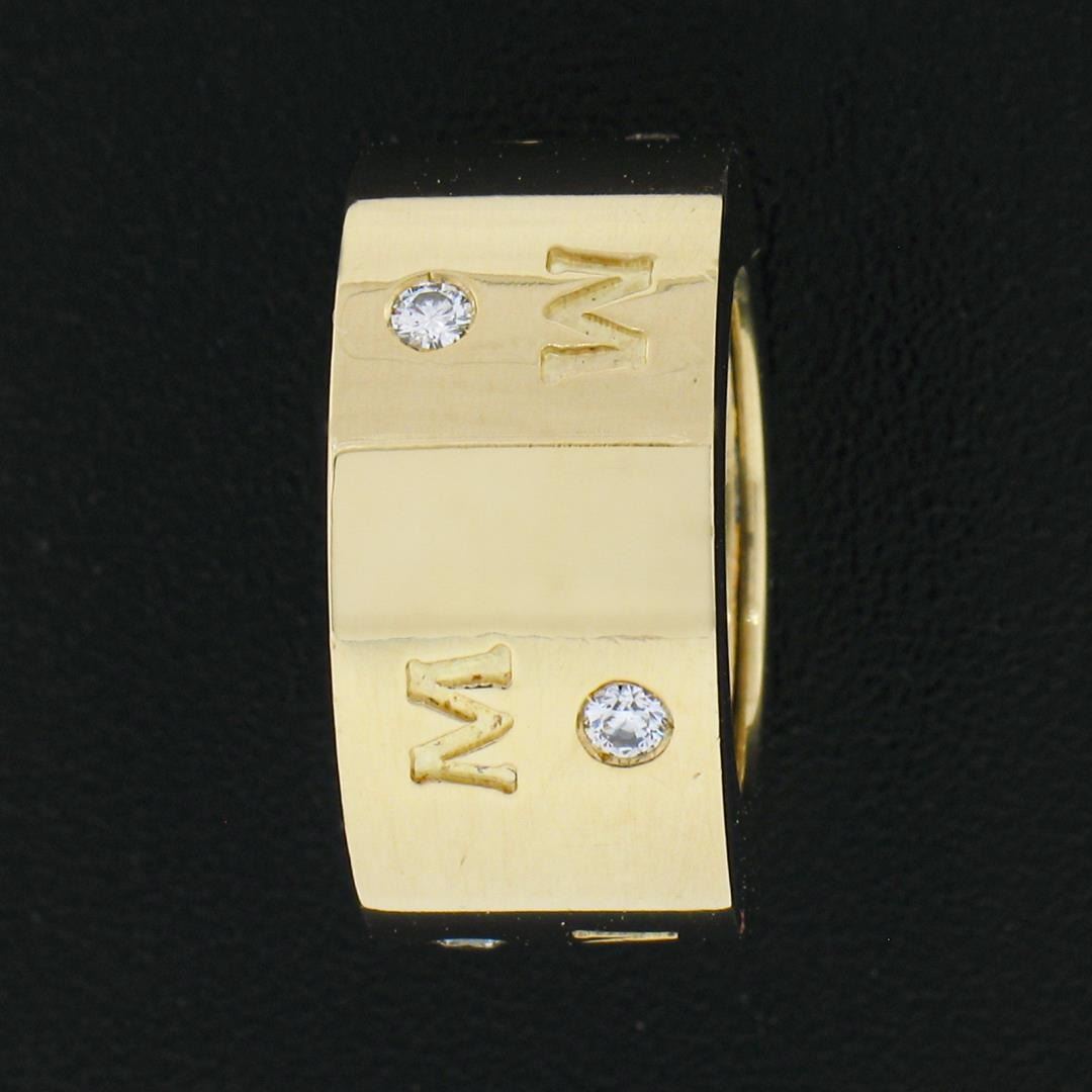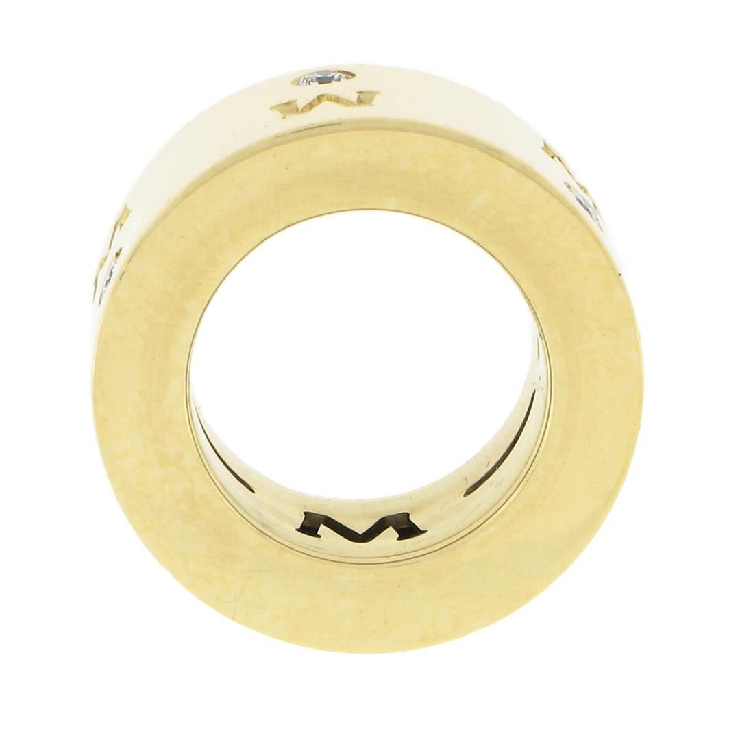 A solid 18k yellow gold slide charm pendant by Messika, with 6 round cut natural diamonds (G - VS1/VS2 ; 0.12ctw). The pendant weighs a total of 9.93 grams, measures 17.1x8mm including the bail, and the inside of the bail measures 10.7mm.