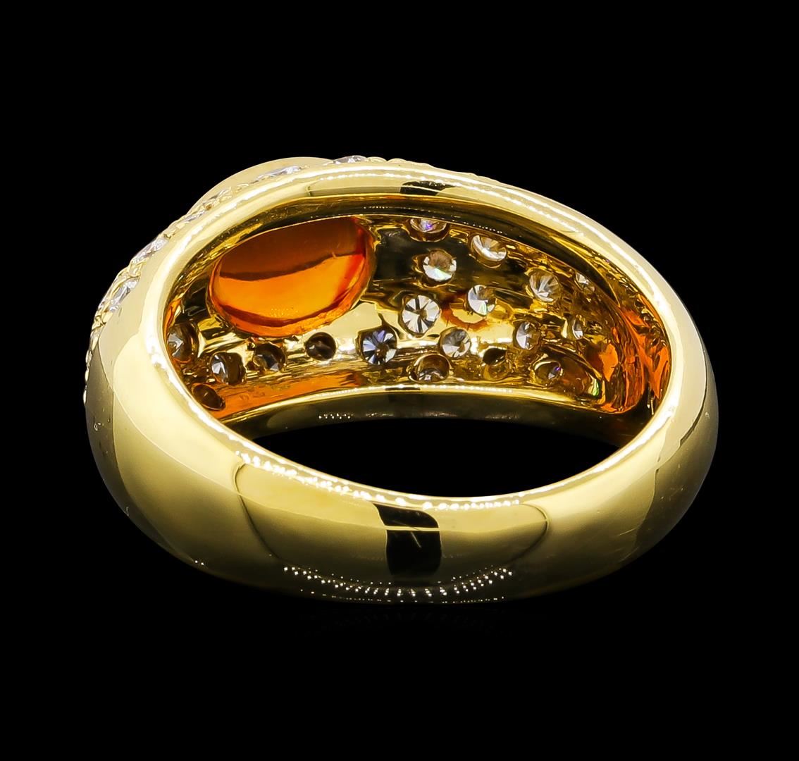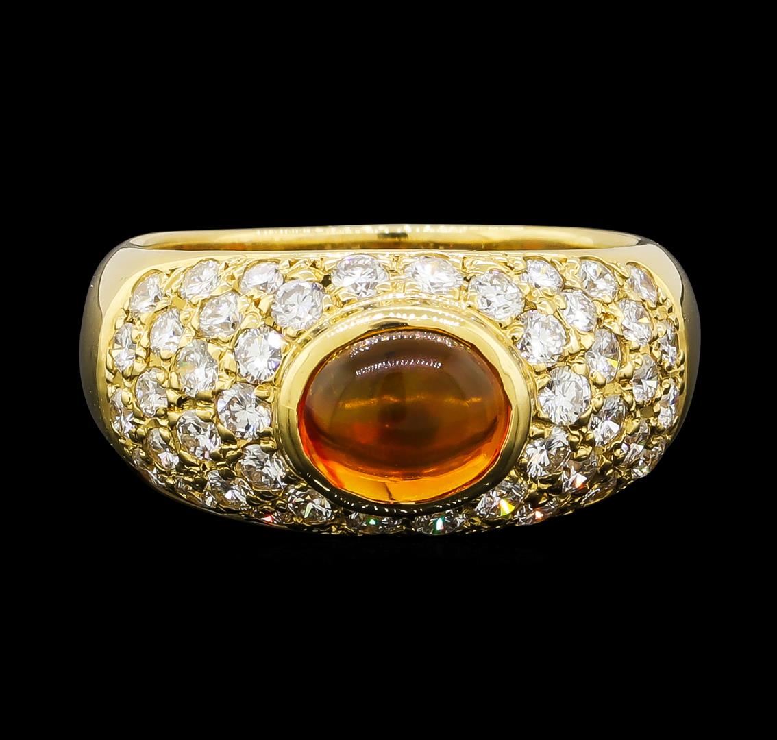 One ring featuring: 18KT Yellow Gold containing Mexican Opal and Diamonds. Total Weight of Ring: 9.4 grams.