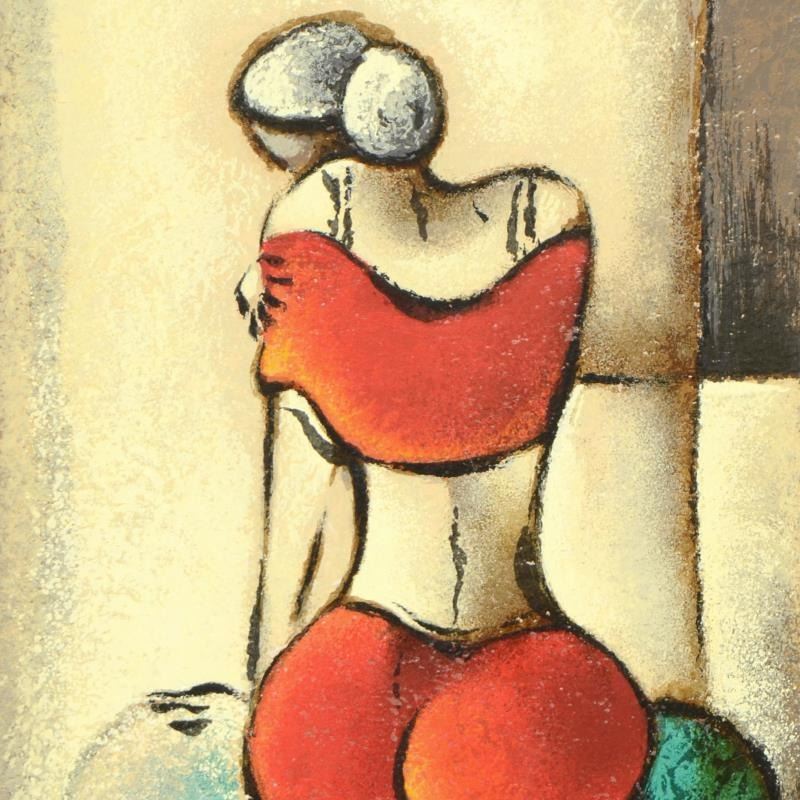 Mia by Schluss, David. "Mia" is a limited edition serigraph on paper by David Schluss, numbered and hand signed by the artist. Includes Letter of Authenticity. Measures approx. 10.5" x 19" (image).