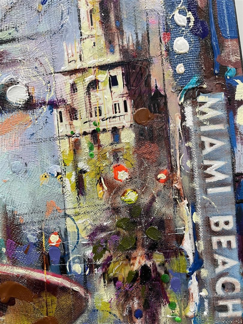 Fascinating original mixed media on canvas, hand signed by artist, this artwork comes gallery wrapped.Approximately 24x60 inches.