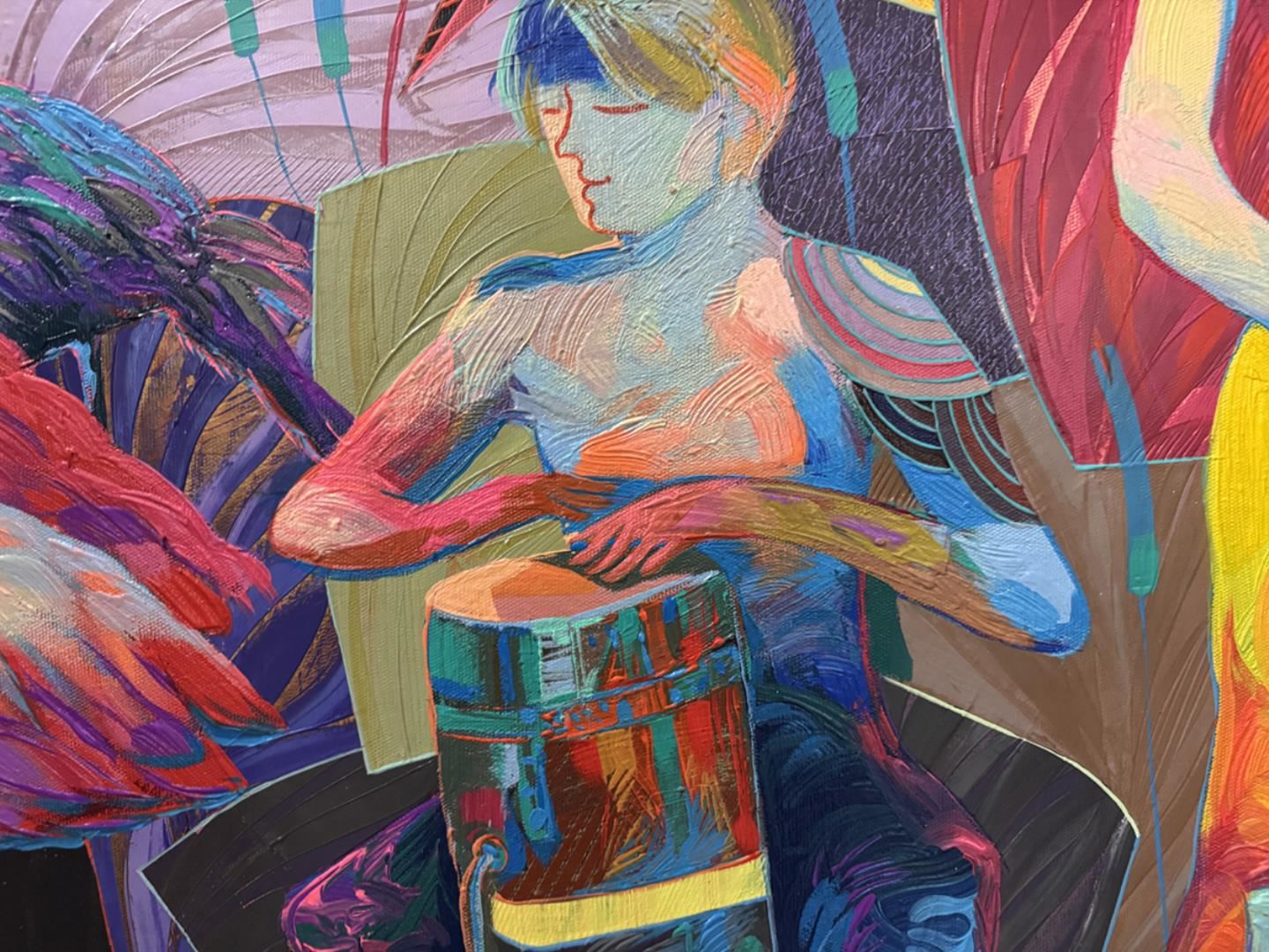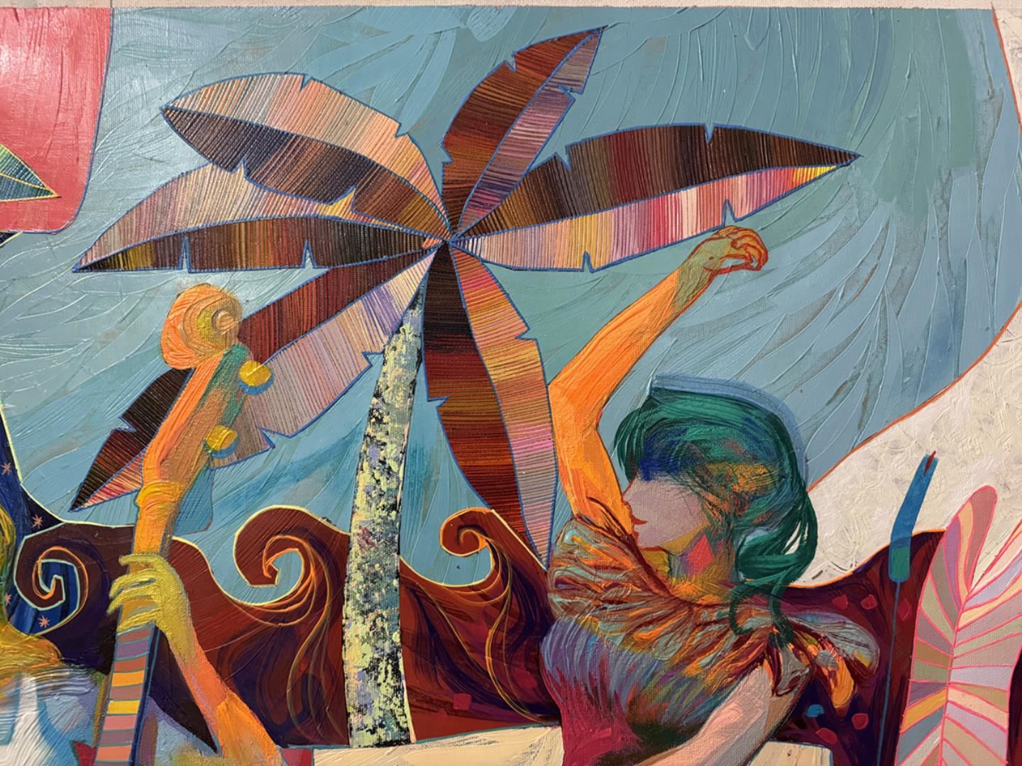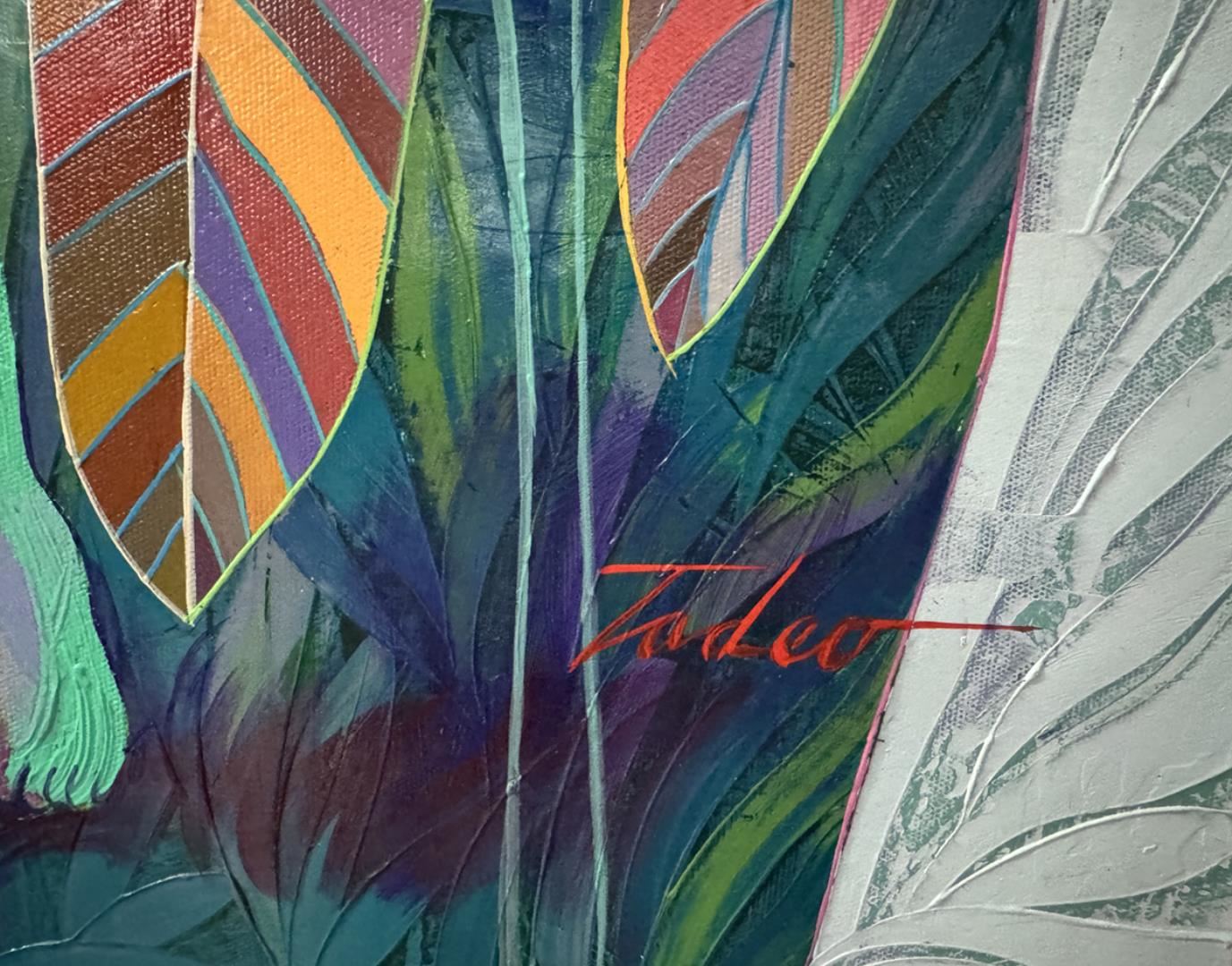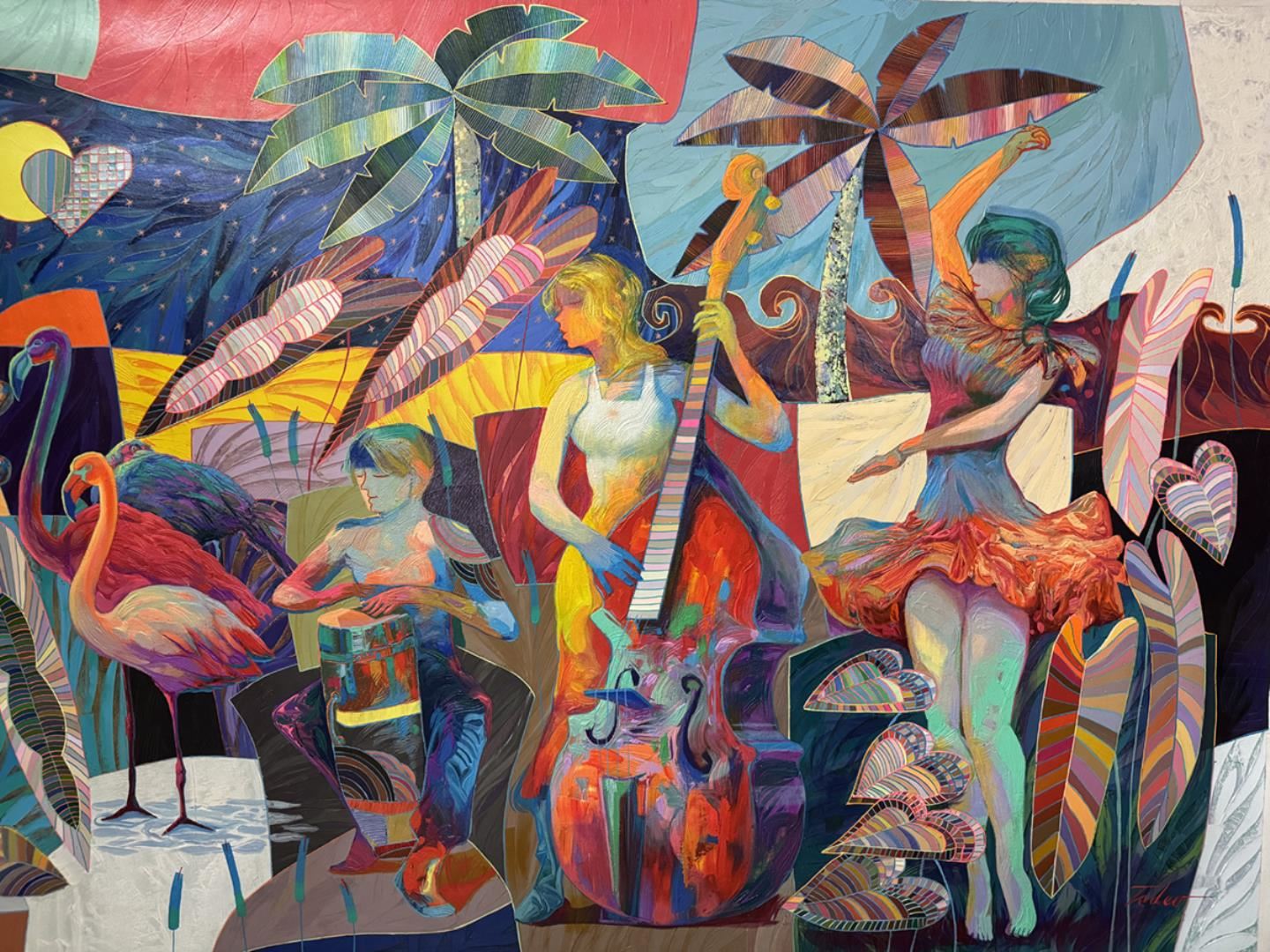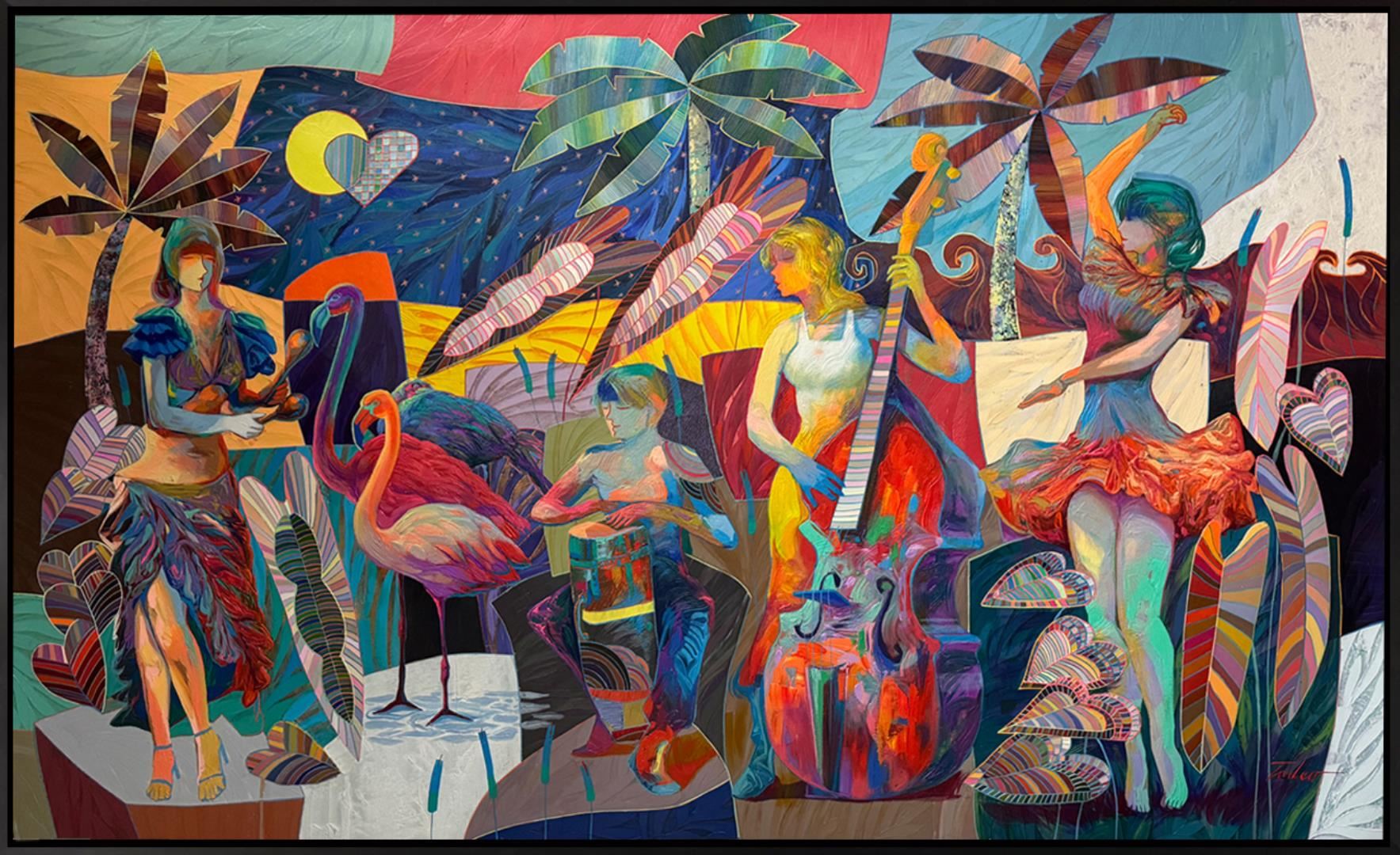 Titled Miami fest captures a sense of motion and urgency, perhaps evoking the thrill and rush of a race under the enigmatic glow of the moon. Tadeo use of contrast, light, and shadow brings a dramatic intensity to the composition. This artwork comes framed and ready to hang. Art size 79x48" framed size 81x50"