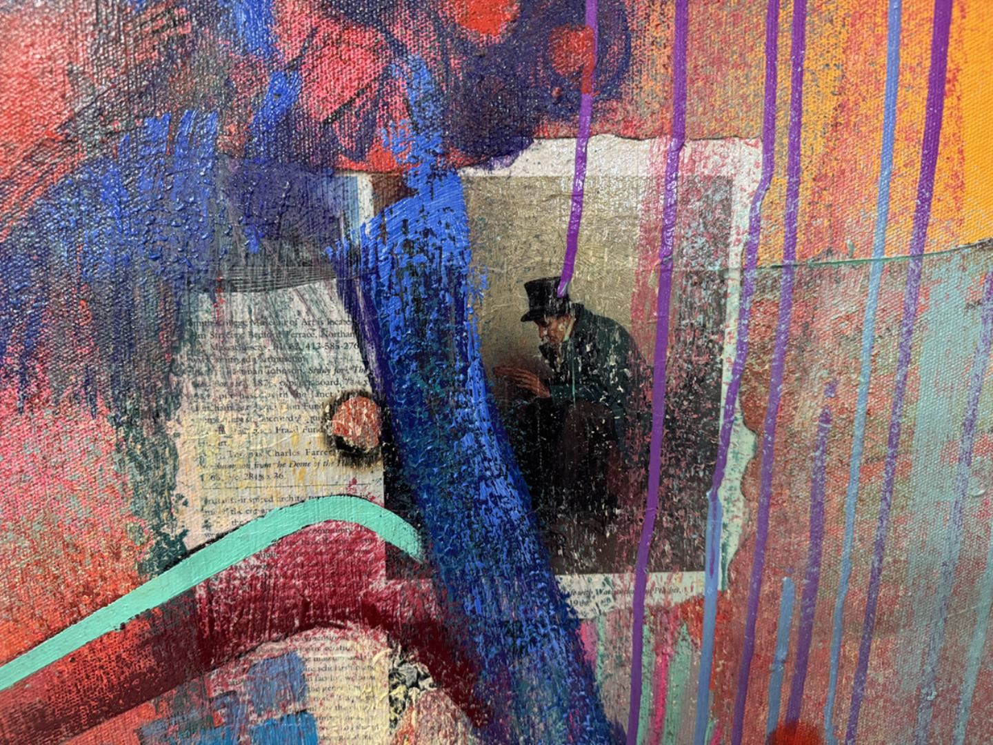 Exquisite original acrylic on canvas 59x59", hand signed by Artist. This artwork comes rolled in a tube.