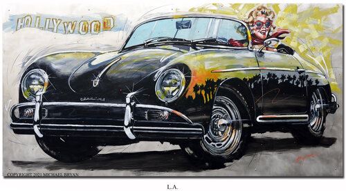 Michael Bryan's "L.A." is a 20x40" handworked Unique 1/1 giclee on canvas featuring Hollywood's favorite 356 Porsche.