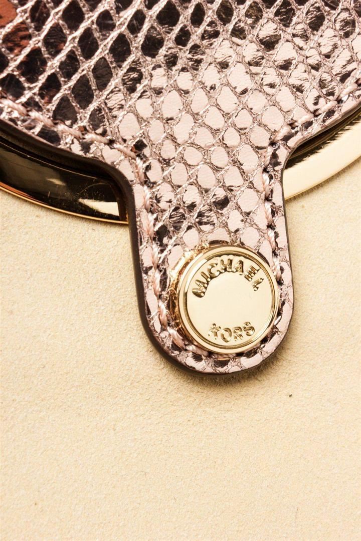 Michael Kors Cream Leather Scout Large Shoulder Bag with material leather, gold-tone hardware, leather lining, interior slip pockets, shoulder strap and flap closure.