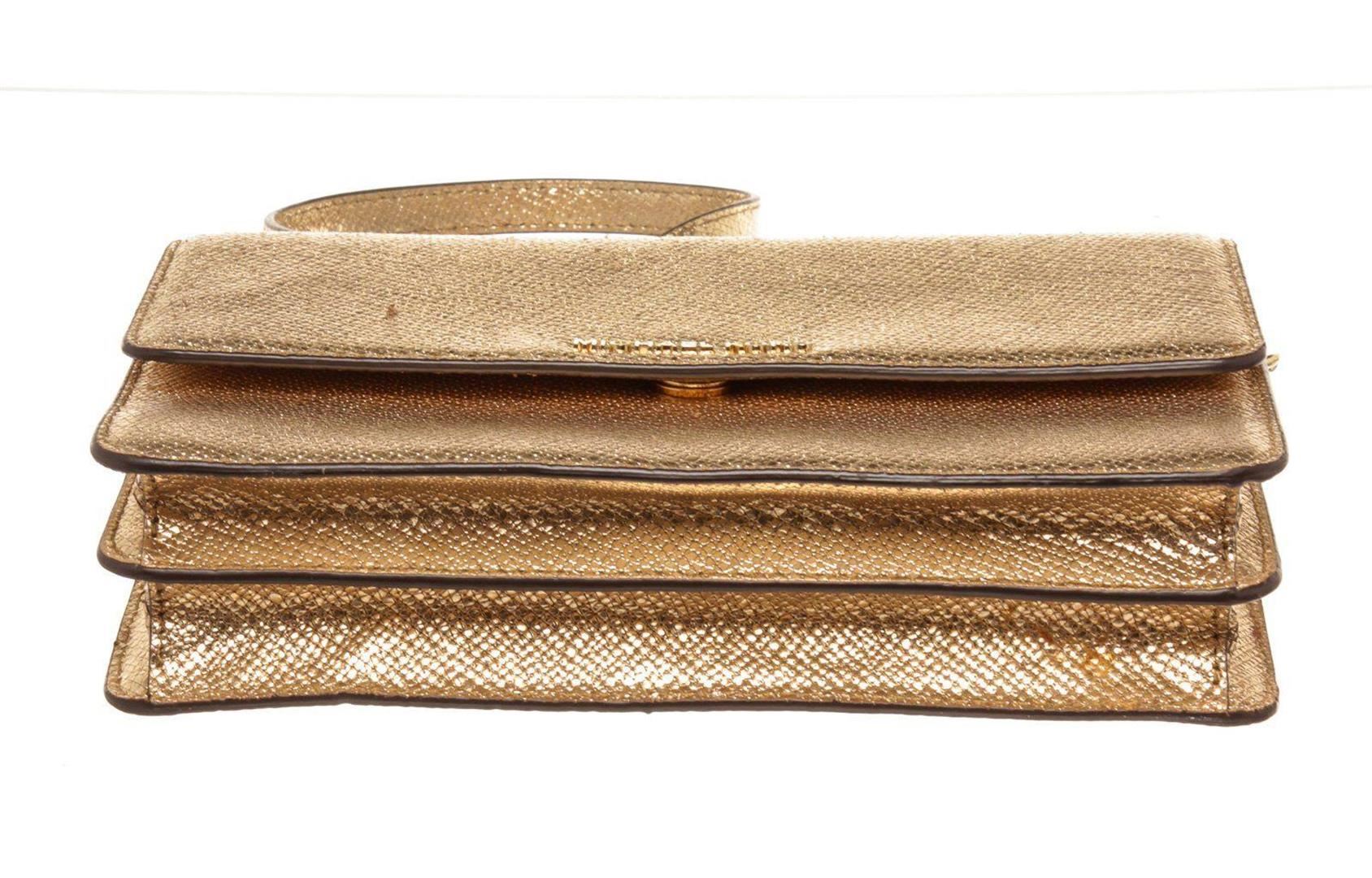 Michael Kors Gold Leather Large Gusset Crossbody Bag with material leather, gold-tone hardware, interior slip pockets, shoulder strap and snap closure.