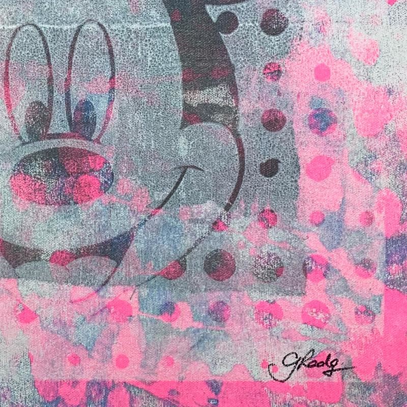 "Mickey Mouse" is an original hand pulled silkscreen and acrylic painting on canvas by Gail Rodgers. Hand signed by the artist, the piece comes with a letter of authenticity. This piece is meant to be gallery wrapped and measure approximately 23" x 23" and image dimensions (after stretching) 16" x 16" (image).