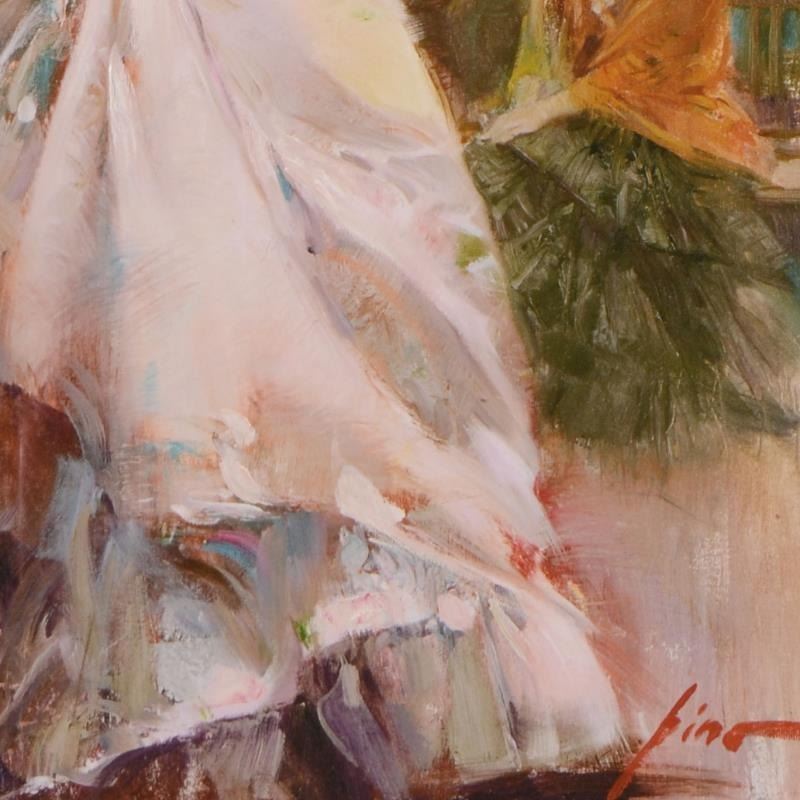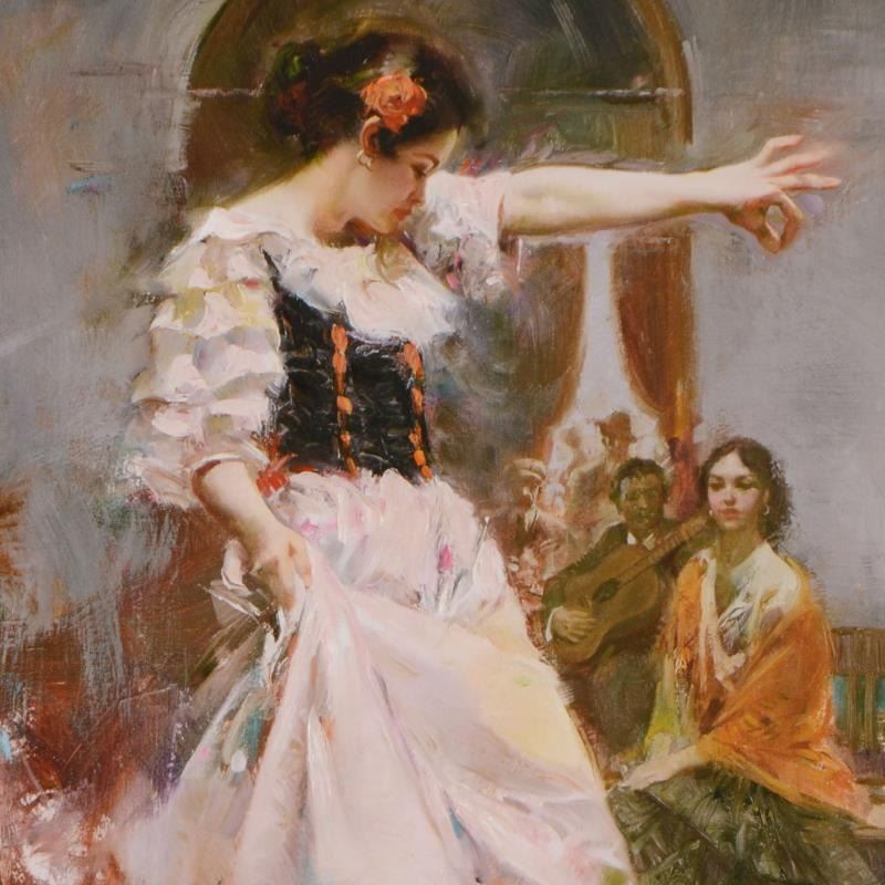 Pino's portraits allow glimpses into intensely personal, intimate spaces, conveying emotion through rich, warm color and sensual brushwork. "Midnight Tango" is an artist-embellished limited edition giclee on canvas by Pino (1939-2010). The piece is numbered, hand signed, custom framed, and includes certificate of authenticity. Measures approx. 25.5" x 31.5" (frame), 18" x 24" (image).