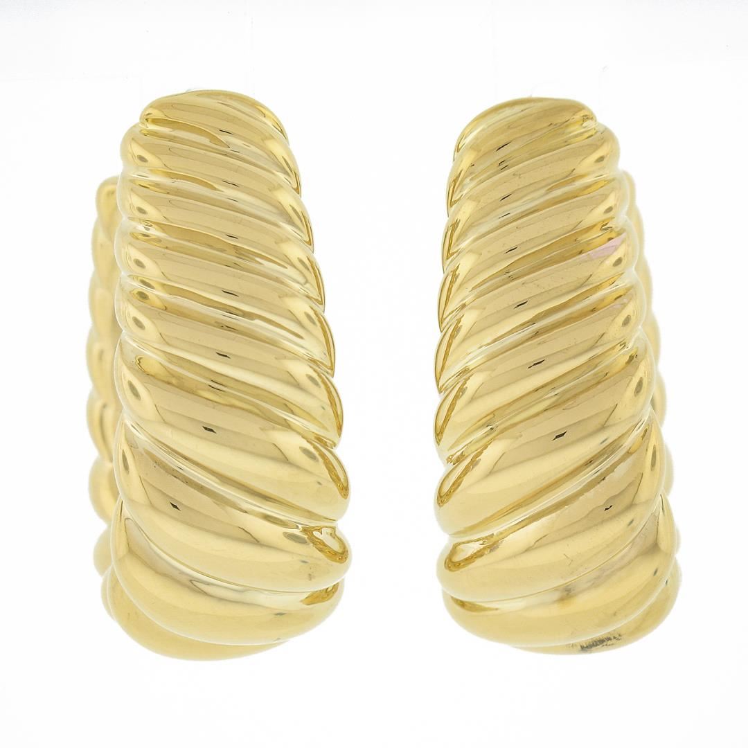 An italian solid 14k yellow gold hoop earrings by MilorThe earrings measure approximately 26x12mm and weigh a total of 8.89 grams.