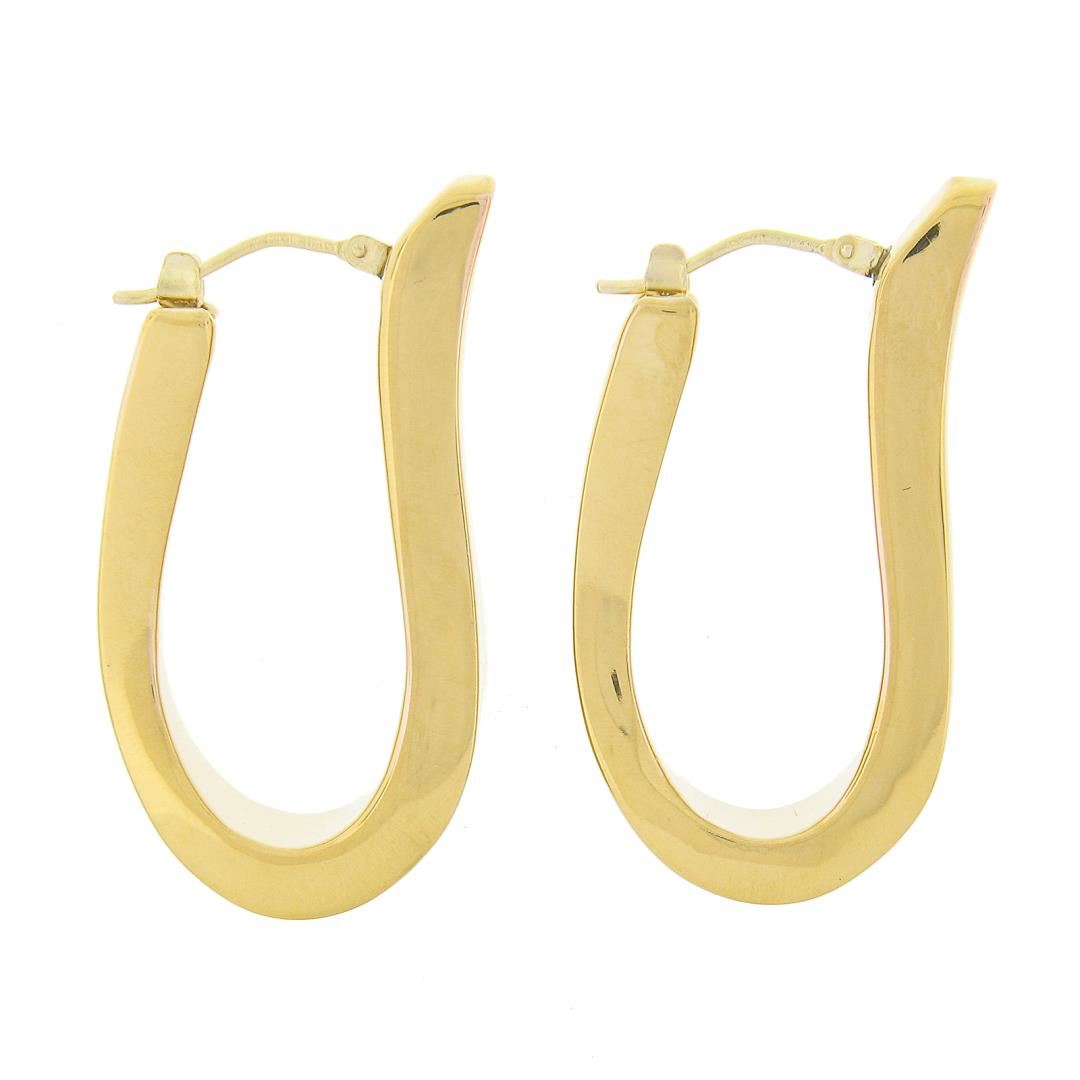 A solid 14k yellow gold hoop earrings by Milor. The earrings measure approximately 38x10.4mm and weigh a total of 8.40 grams.