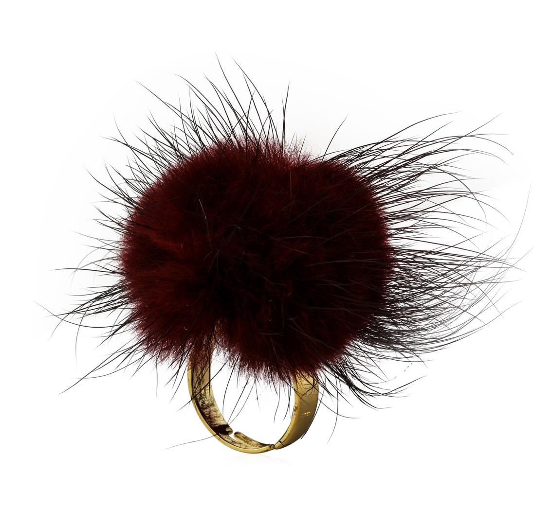 High end designer jewelry. Mink Fur Adjustable Ring - Gold Plated. Gold Plated Setting. Red. Adjustable.