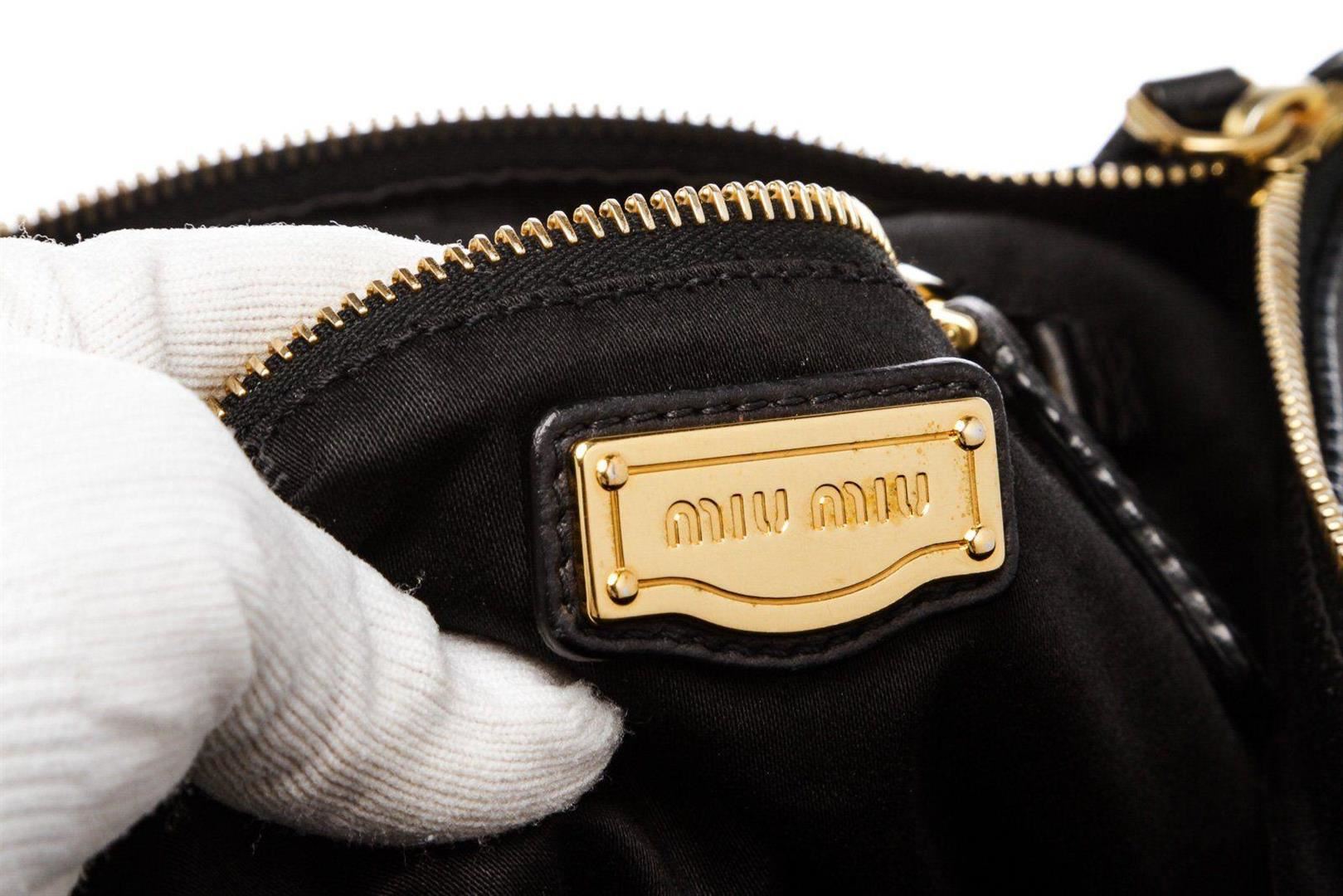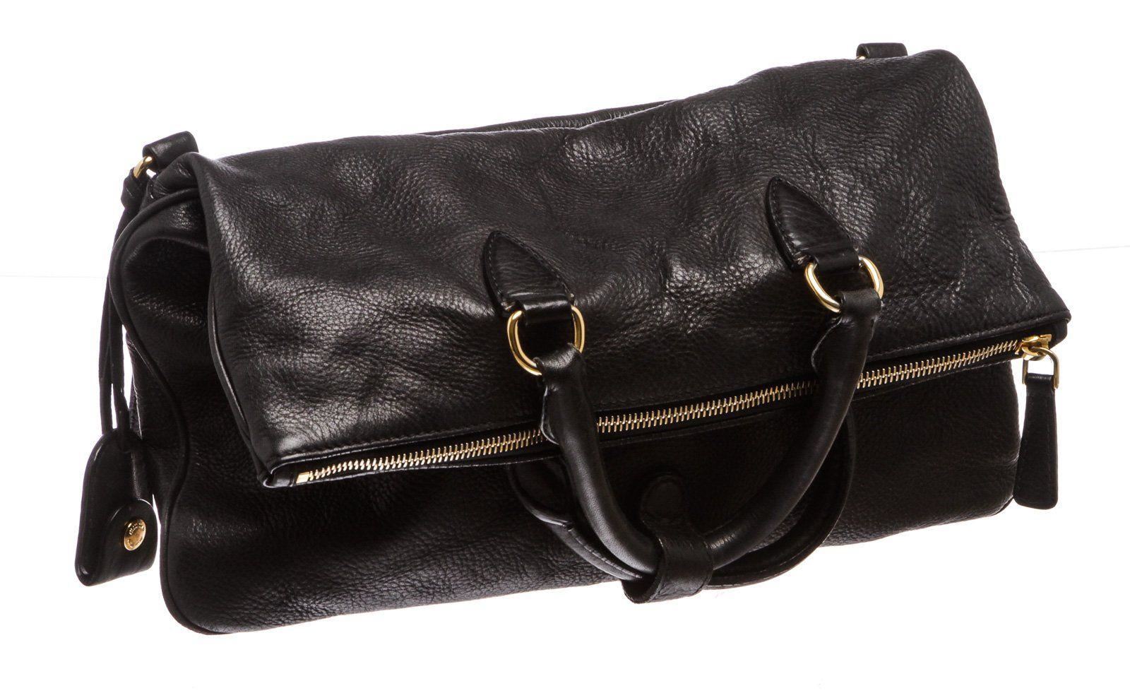 Overall flap over zip top closure, dual rolled handles, and gold tone hardware. Interior is black fabric lined with one zip pocket. Measurements: Length: 14.5 in / 37 cm Width: 5 in / 13 cm 14 in / 36 cmGood overall, please see photographs for detail.