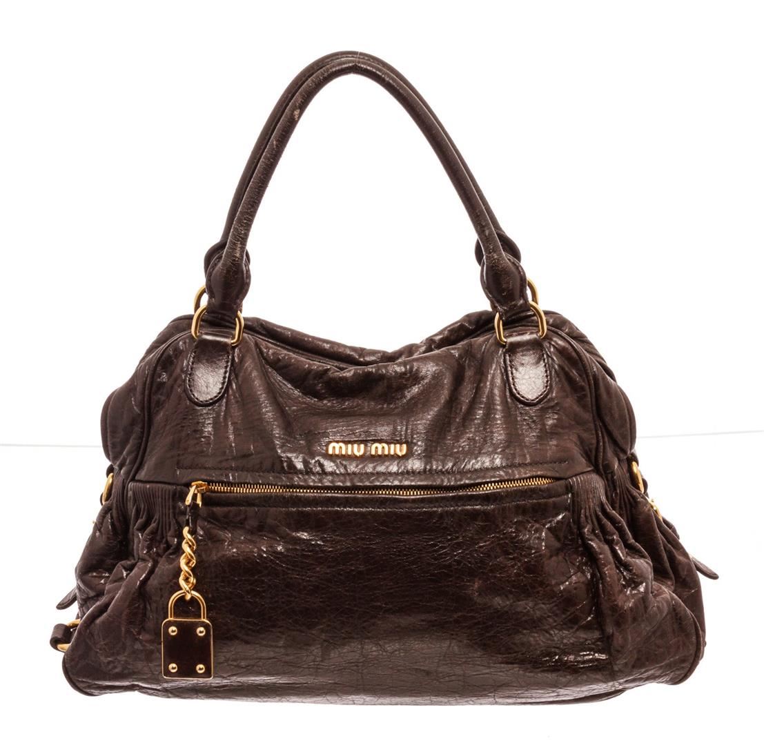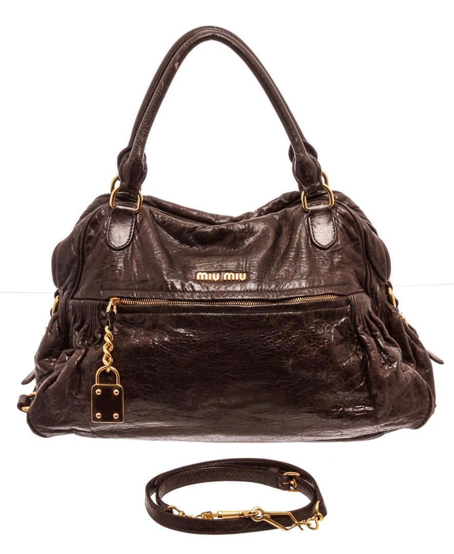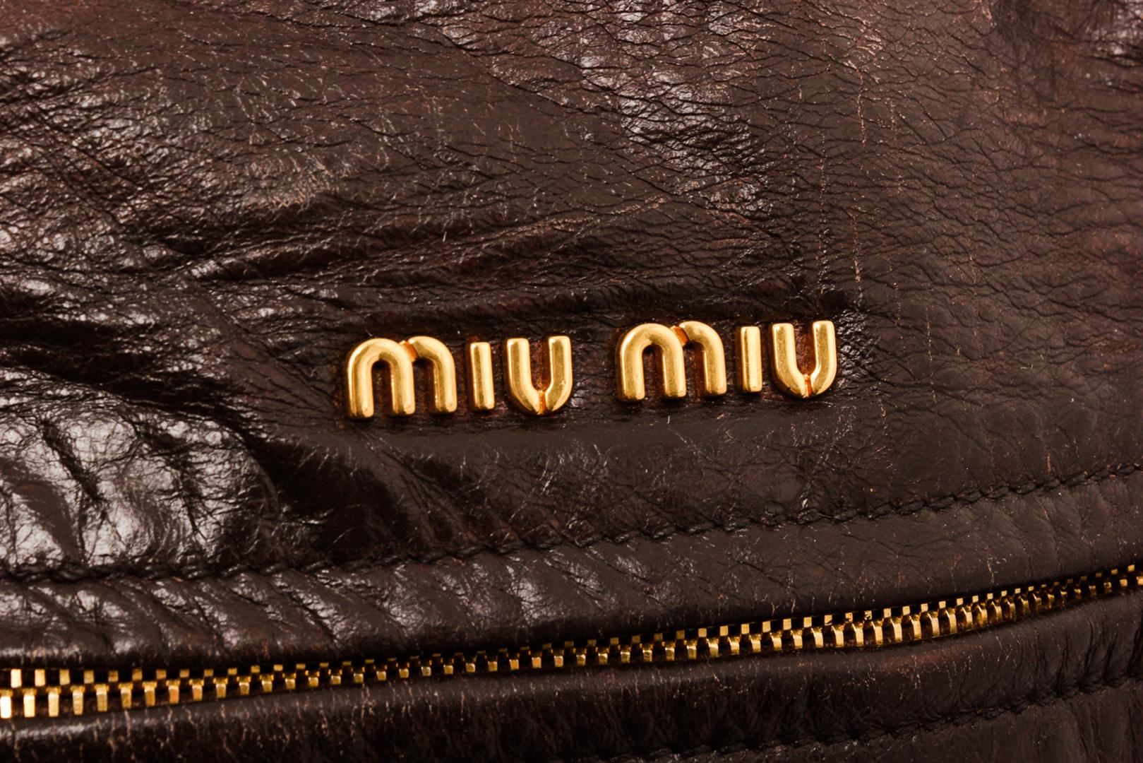 Miu Miu Black Leather Two Way Bag Shoulder bag with material leather, gold-tone hardware, exterior zip pocket, interior zip pocket, leather lining, shoulder strap and zip closure.