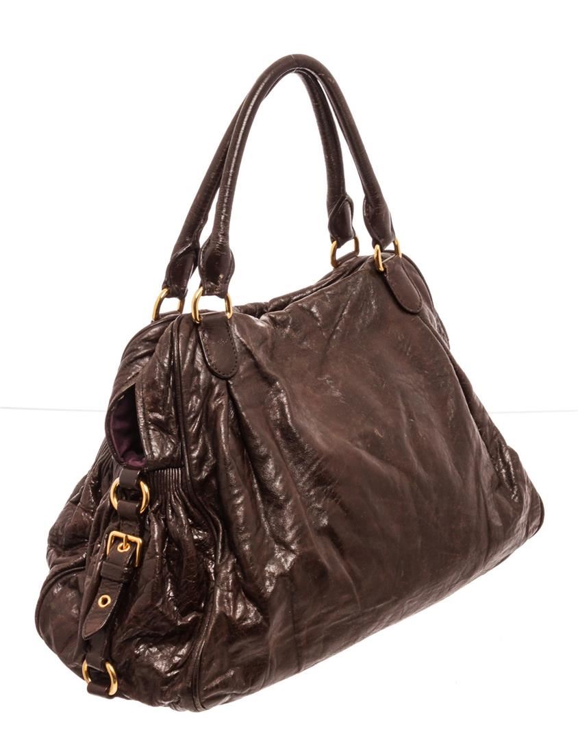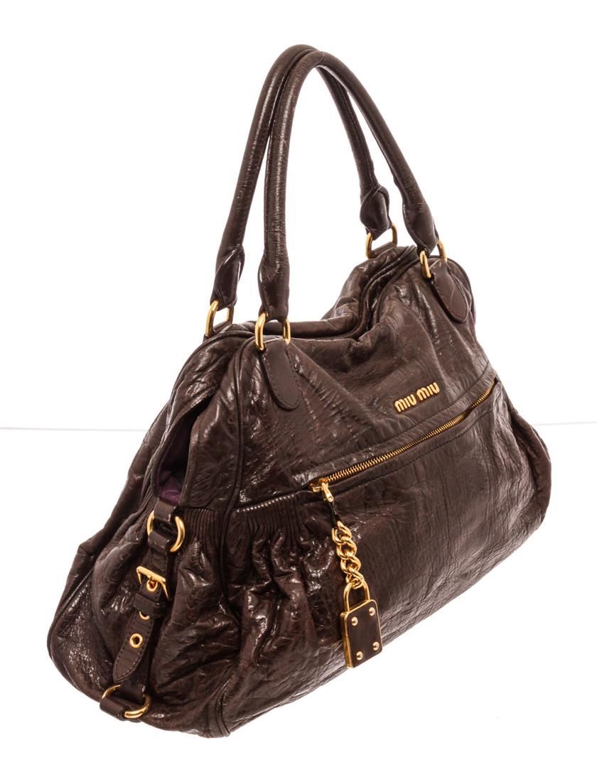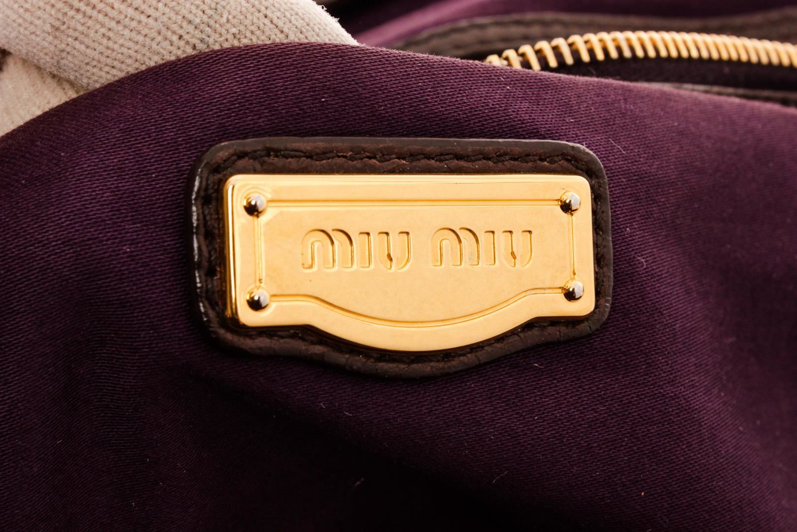 Miu Miu Black Leather Two Way Bag Shoulder bag with material leather, gold-tone hardware, exterior zip pocket, interior zip pocket, leather lining, shoulder strap and zip closure.