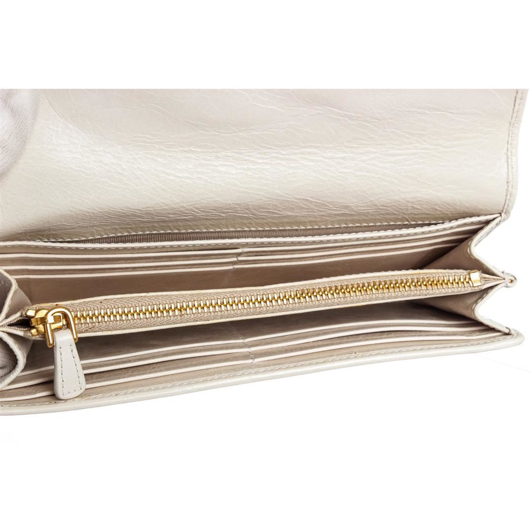 Overall double push button closure. Interior contains 12 credit card slip pockets and 2 bill slip pockets also contains 1 zipper pocket. Dimensions = 7.4"x3.7"x1"/18.7cmx9.3cmx2.5cm. Item is pre-owned.