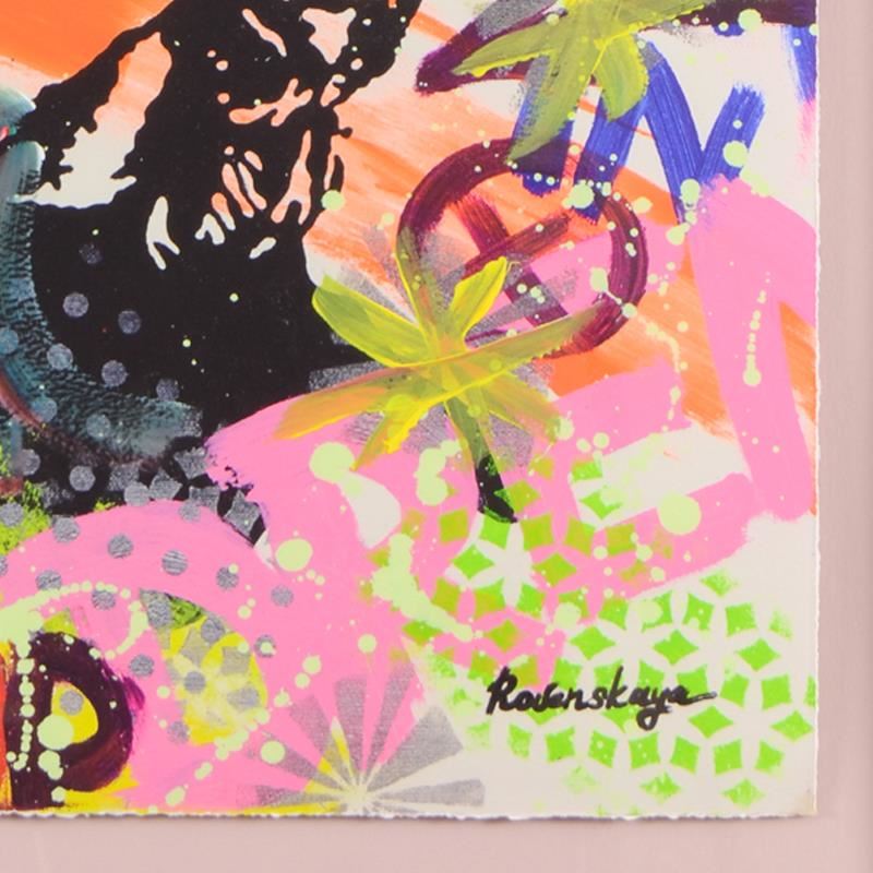 "Model" is an unique mixed media on deckle edge paper by Nastya Rovenskaya, hand signed by the artist. This piece comes floating in a custom frame. Includes Letter of Authenticity. Measures approx. 31" x 36.5" (framed), 24" x 30" (image).