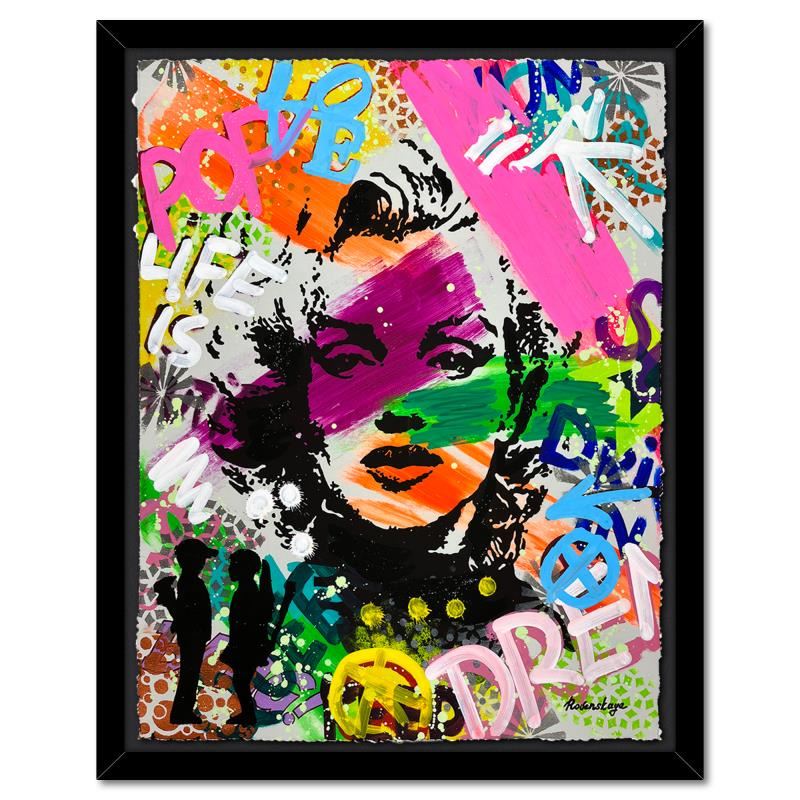 "Model" is a one-of-a-kind mixed media on deckle edge paper by Nastya Rovenskaya; hand signed by the artist. This piece comes custom framed and includes letter of authenticity. Measures approximately 36" x 30" (framed), 30" x 24" (image).
