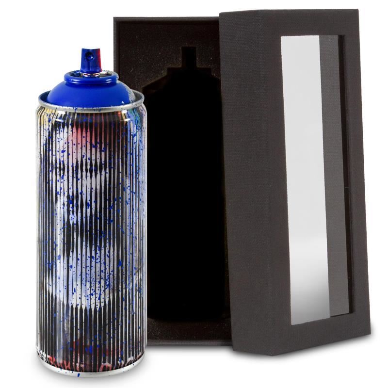 "Mona Lisa (Blue)" is a numbered limited edition hand painted spray can by Mr Brainwash. This piece bears the plate signature of the artist and comes from his 2020 Classic Spray Can Collection. Measures approximately 2.5" x 7.5".