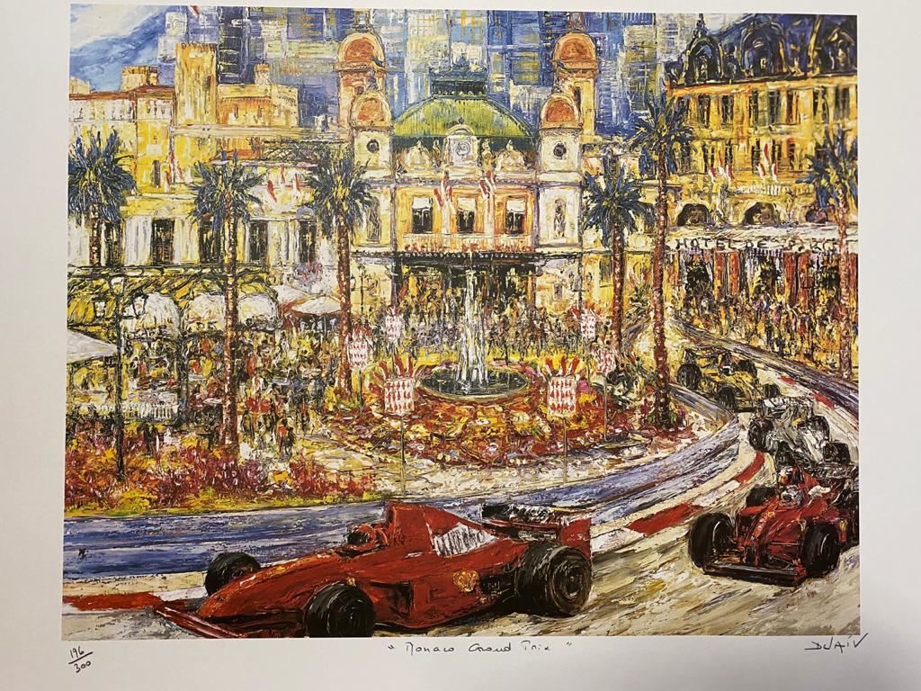 Monaco Grand Prix by Duaiv. Limited Hand Signed Lithograph on Paper. Dimensions: 25 x 29.5. Excellent Condition.