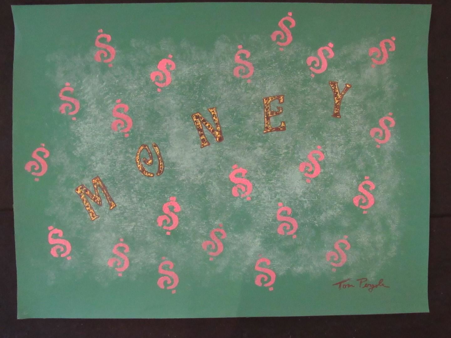 A colorful abstract acrylic painting by California artist Tom Pergola. 17.7/8x23.3/8" on irregular acid-free art paper, with COA.