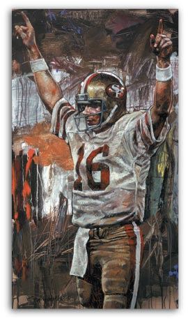 Joe Montana celebrates winning "Superbowl XVI" by Stephen Holland. A signed, hand embellished 42" x 23" giclee AP2/16, Stretched w/COA