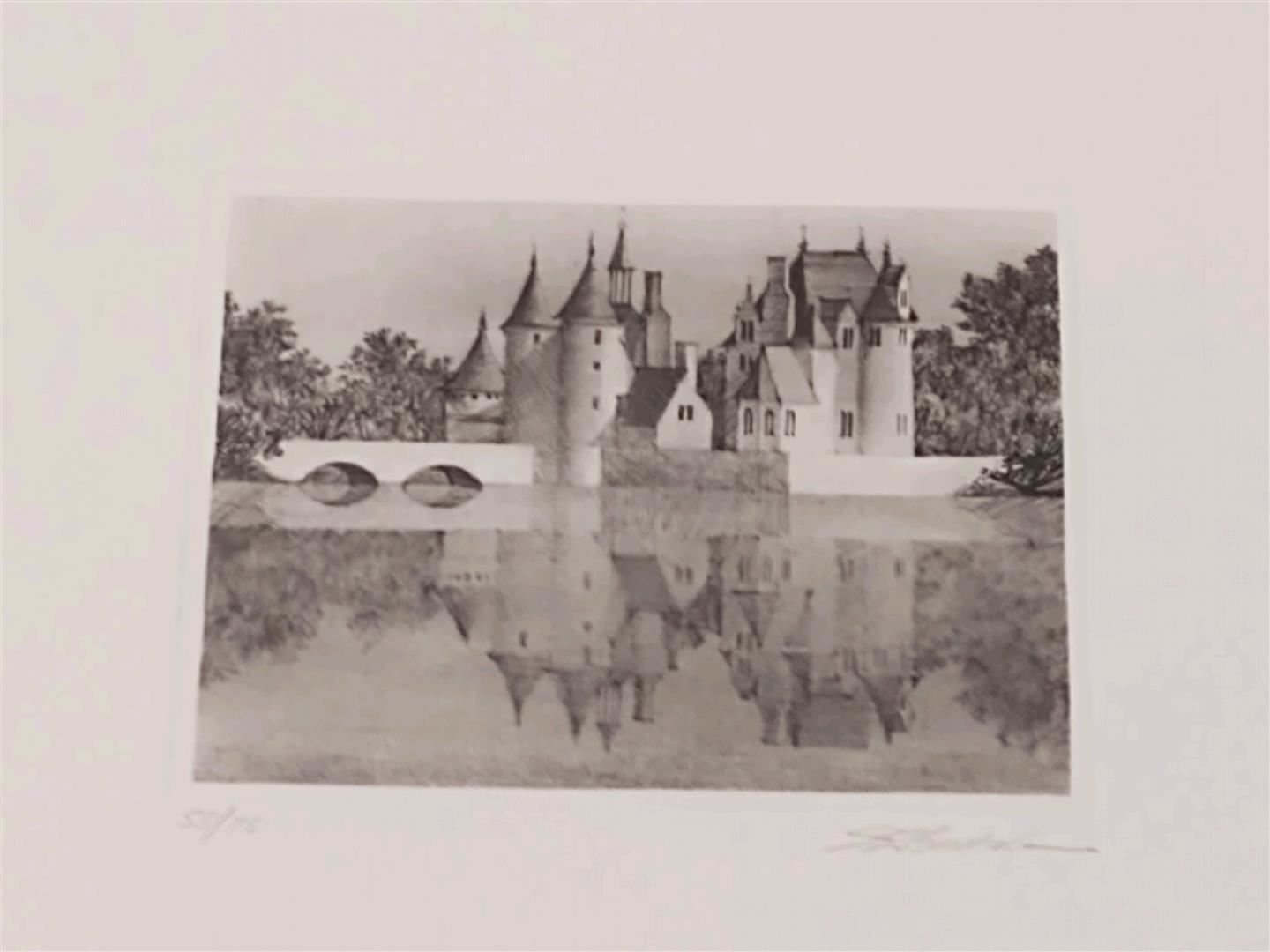 Montreuil Bellay by Jim Buckels. Limited Edition, Serigraph on Paper. 6 3/8" x 8 1/2".