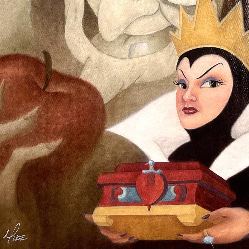 "More Fair Than Thee" is a limited edition Japanese giclee on canvas by Mike Kupka numbered and hand signed by the artist. This piece is licensed by Disney Fine Art. Includes Letter of Authenticity. Measures approx. 14" x 18" (image).
