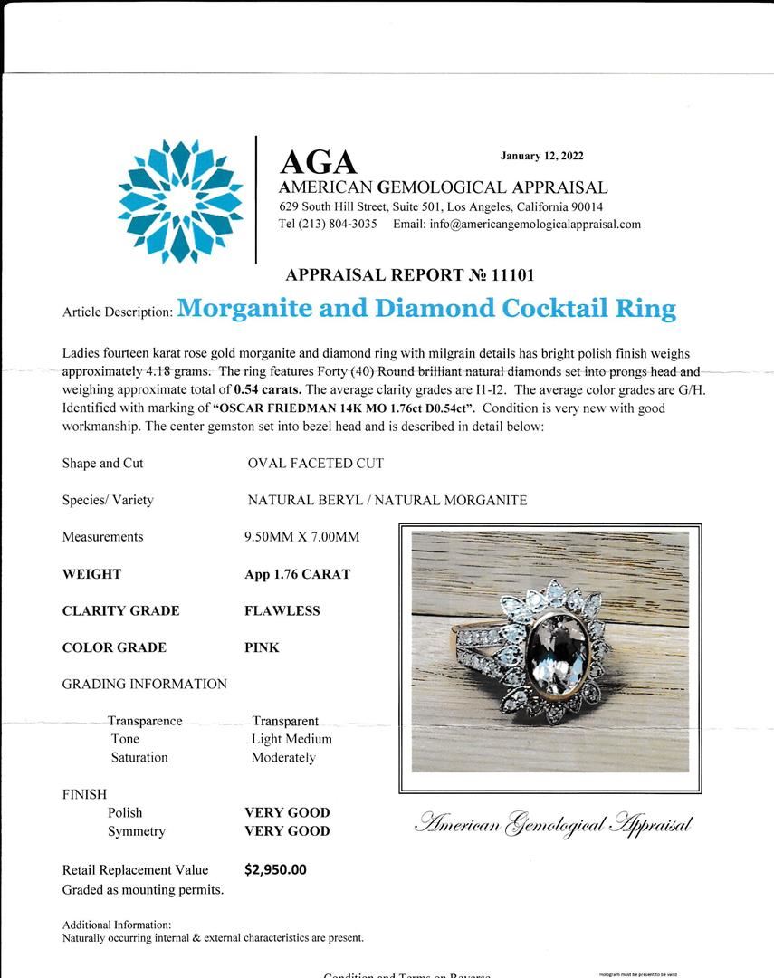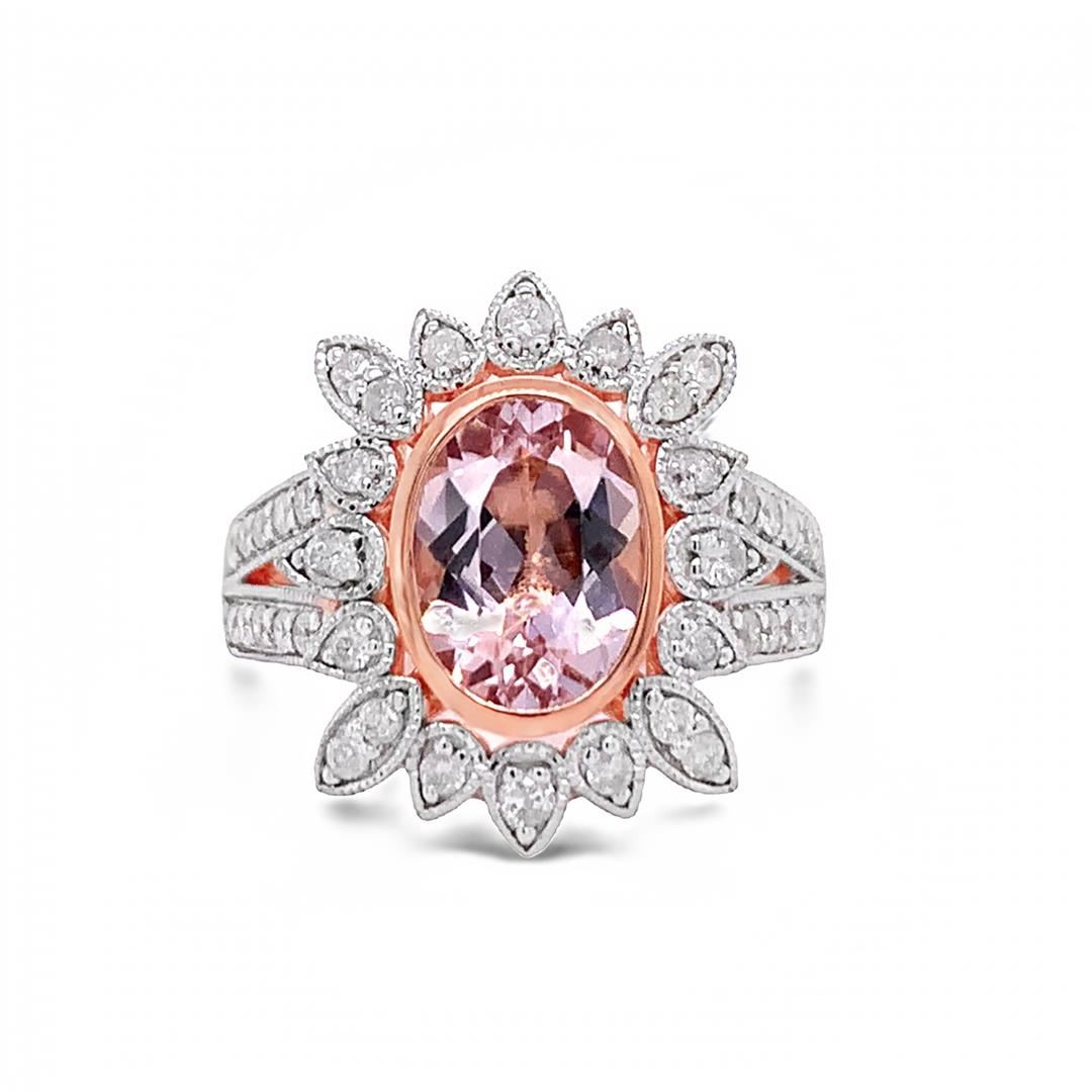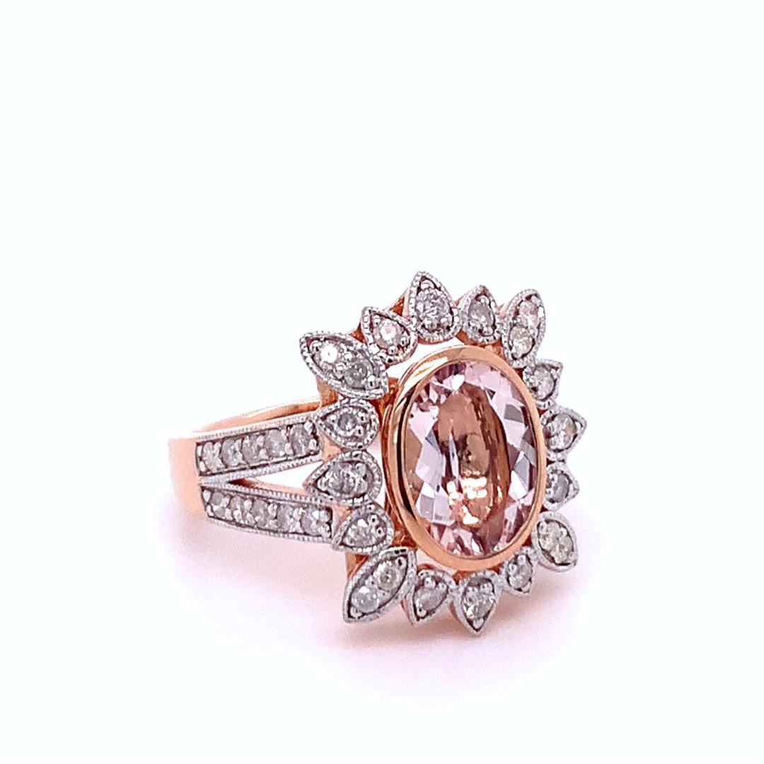 Morganite Ring. Please see Photos and Description for all available information. This morganite ring features a 1.76ct light pink morganite stone, surrounded by sparkling white diamonds on the rose gold setting. Morganite is the perfect choice for a beautiful engagement ring or a one-of-a-kind wedding band.