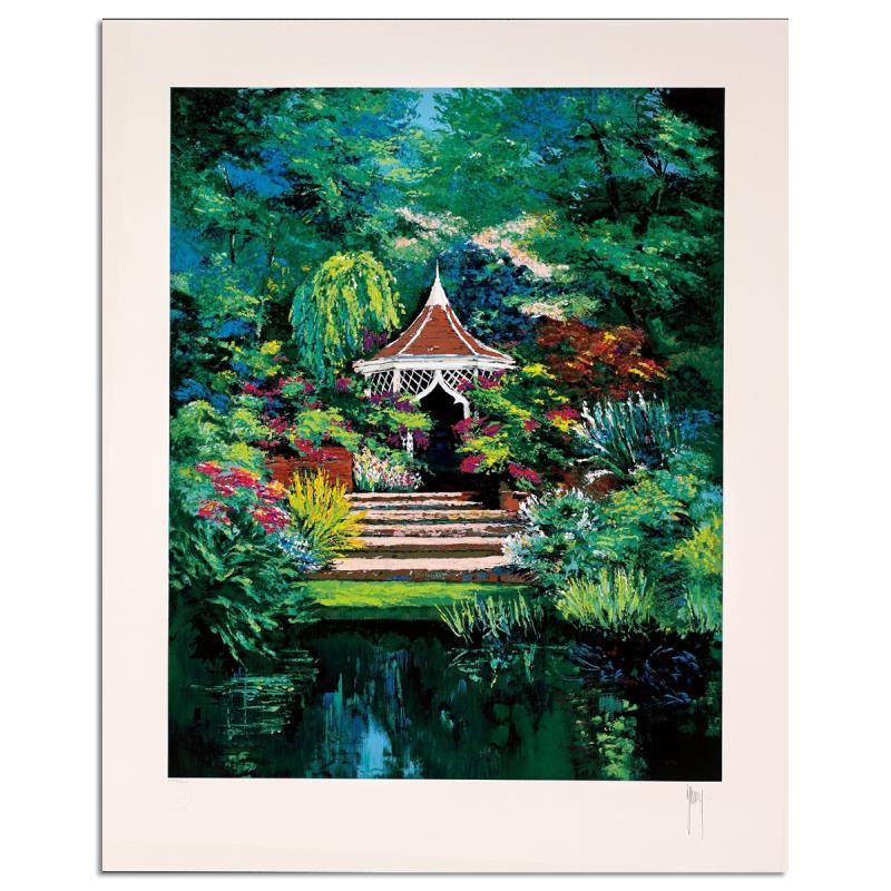 "Morning Fragrance" is a limited edition serigraph on paper by Mark King (1931-2014). Hand signed and numbered, this piece comes with a letter of authenticity and measures approximately 30" x 24" (image).
