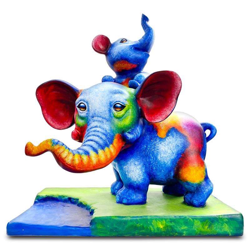 "Mother Love" is a hand painted limited edition, dimensional art, bas relief sculpture by Wang. This piece is numbered AP 4 and hand signed in verso. Includes Letter of Authenticity. Measures approx. 25" x 22.5" x 13.5 (base with sculpture). There are some minor white scuffs on the base of the sculpture.