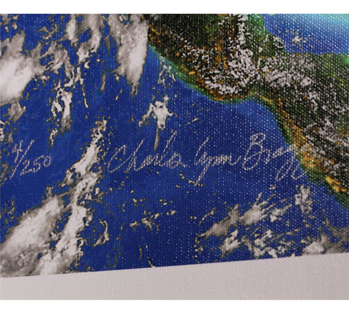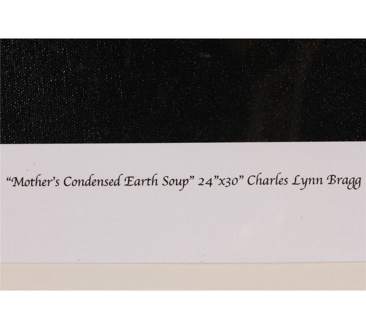 "Mother's Condensed Earth Soup" is Charles Lynn Bragg's re-interpretation of Andy Warhol's iconic Campbell's Soup image This signed and numbered giclee # 6/250 on canvas. It measures 30x24" unframed . Framed it measures 35x29" , with a ship weight approx 18lbs. The Earth Icons series is a journey through Art History, with Bragg utilizing the world's most famous paintings to remind us all that we must all remain aware that our planet is fragile and needs our loving care and our attention to its delicate balance. Ship weight approx 15 lbs. Certificate available upon request. Limited Edition S/N Giclee on Canvas # 4/250.