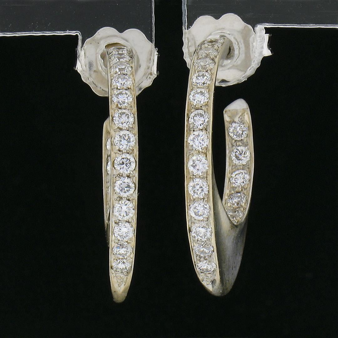 A solid 18k white gold cuff earrings by Mouawad, with 44 round cut natural diamonds (F/G - VS1/VS2 ; 0.50ctw). The earrings measure approximately 18.4x2mm and weigh a total of 5.05 grams.