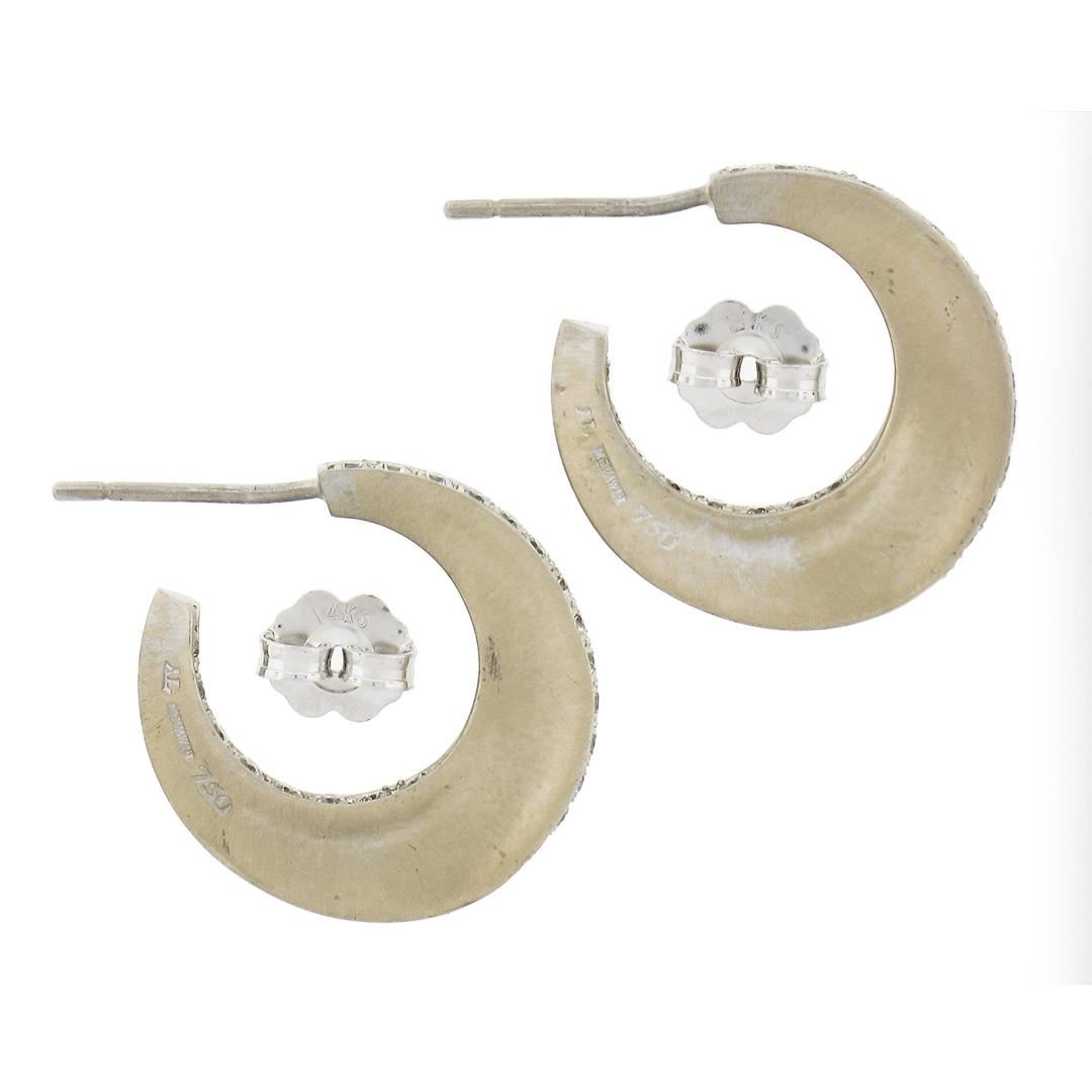 A solid 18k white gold cuff earrings by Mouawad, with 44 round cut natural diamonds (F/G - VS1/VS2 ; 0.50ctw). The earrings measure approximately 18.4x2mm and weigh a total of 5.05 grams.