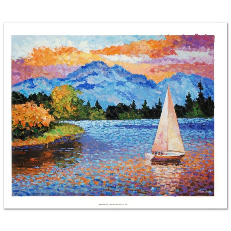 "Mountain Lake Sailing" is a limited edition hand embellished giclee on canvas, numbered inverso and hand signed by Alexander Antanenka. Includes Certificate of Authenticity! Measures approx. 30" x 24" (image).