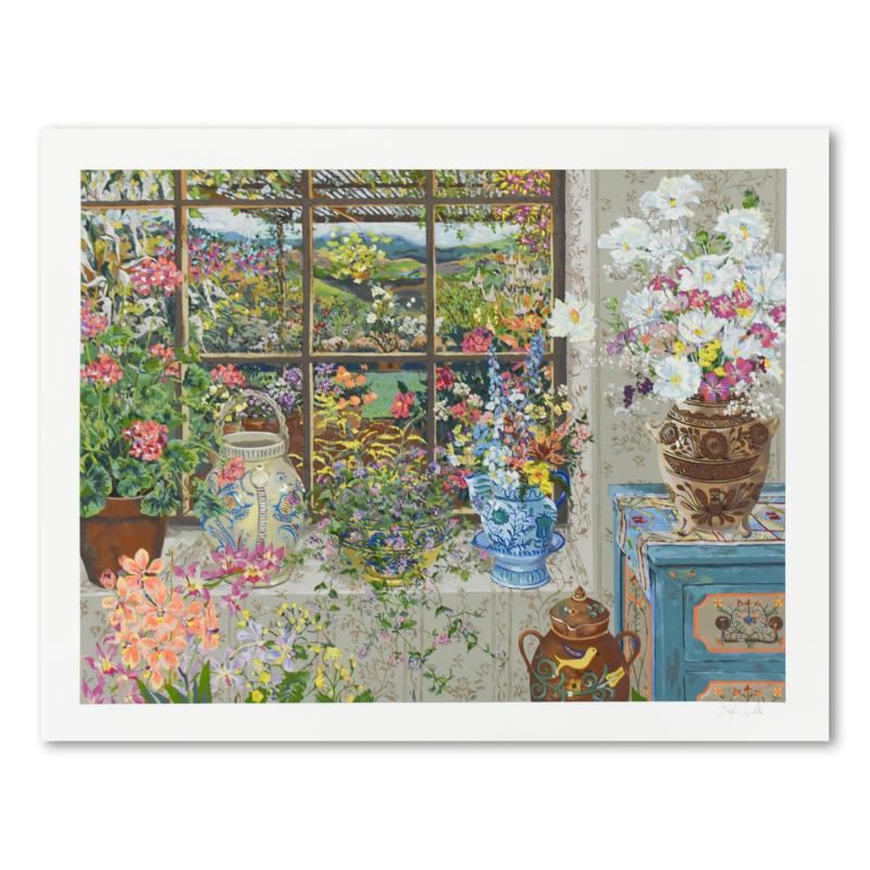 "Mountain Vista" is a limited edition serigraph on paper by John Powell, AP numbered 3/63 and hand signed by the artist. Includes Letter of Authenticity. Measures approx. 36" x 27.5" (border), 32" x 24" (image).