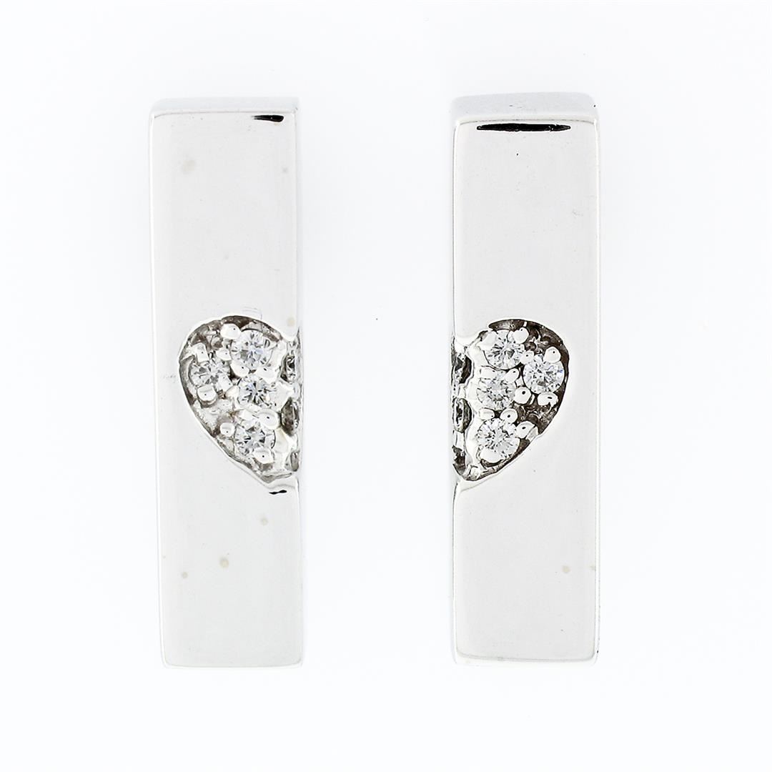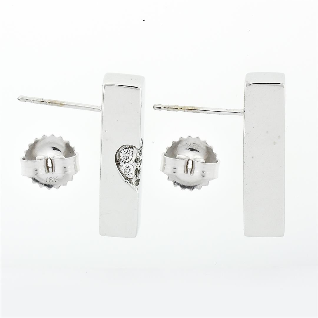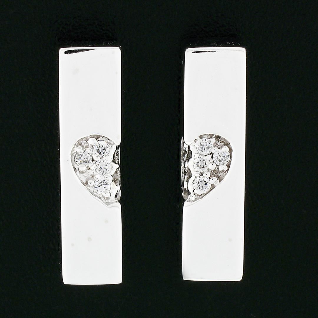 A designer movado solid 18k yellow gold earrings, with 12 round brilliant cut natural diamonds (F- VS1 ; 0.15ctw). The earrings measure approximately 19.20x5.06mm and weigh a total of 9.09 grams.
