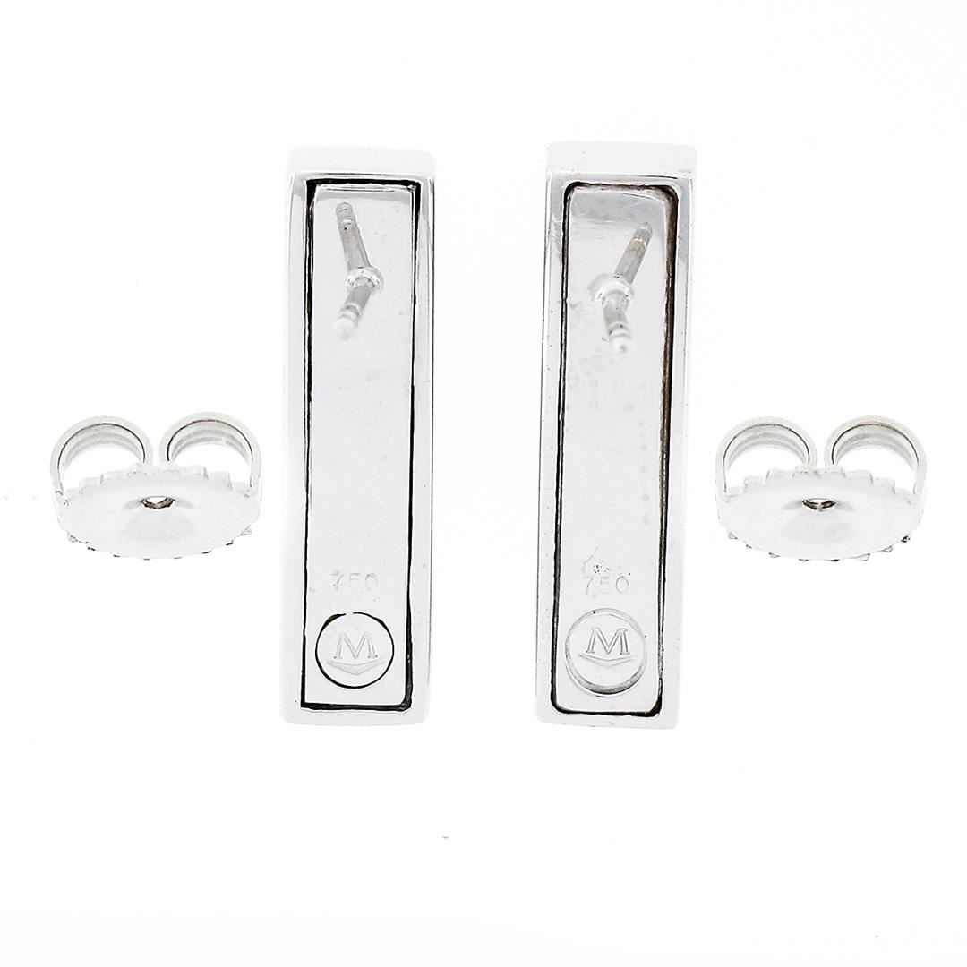 A designer movado solid 18k yellow gold earrings, with 12 round brilliant cut natural diamonds (F- VS1 ; 0.15ctw). The earrings measure approximately 19.20x5.06mm and weigh a total of 9.09 grams.