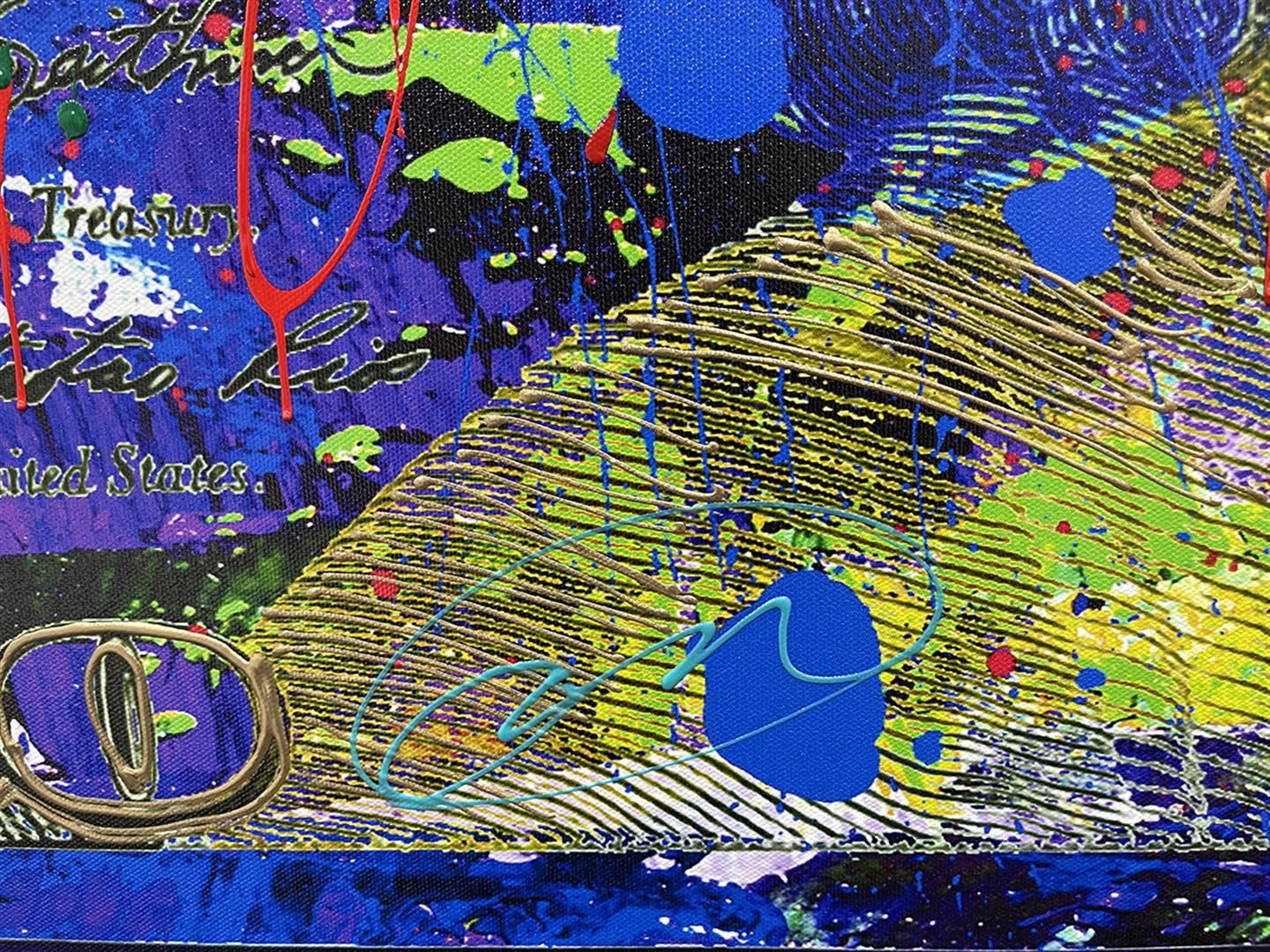 Fascinating original mixed media on canvas. Hand signed by artist. This artwork comes gallery wrapped. 60x26