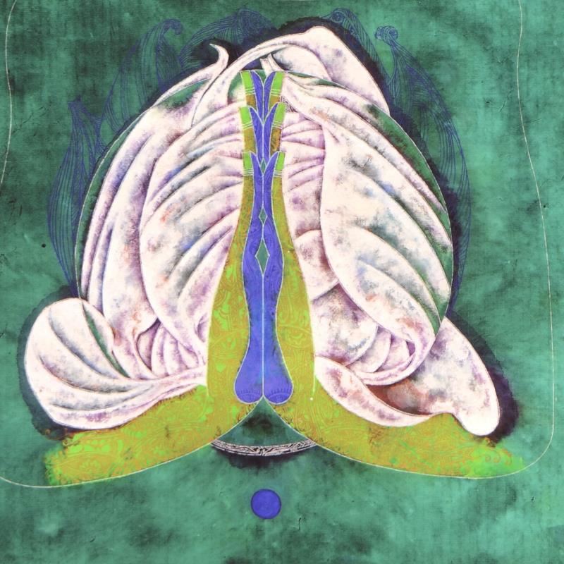 "Mudra Namskara, Prayer" is an limited edition giclee on canvas, by Lu Hong. Hand signed by the artist, this piece comes with a letter of authenticity. The frame is damaged and will need to be repaired or replaced. Measures approx. 10" x 10" (image).