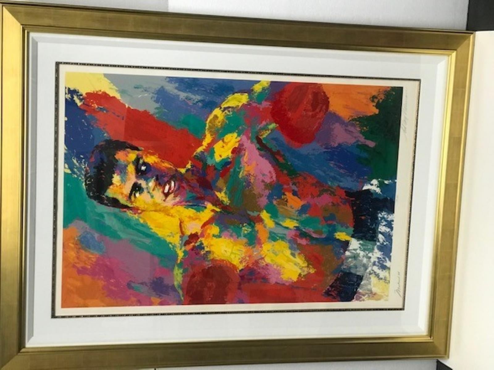 "Muhammad Ali" by LeRoy Neiman (1921-2012) - Hand signed by the artist and the original signature of the subject Muhammad Ali! Limited edition serigraph #595 of 850 - Framed size = 43" wide x 58" tall