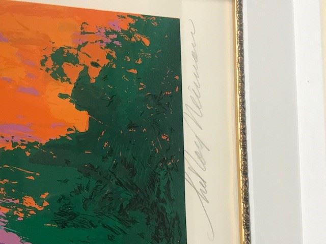 "Muhammad Ali" by LeRoy Neiman (1921-2012) - Hand signed by the artist and the original signature of the subject Muhammad Ali! Limited edition serigraph #595 of 850 - Framed size = 43" wide x 58" tall