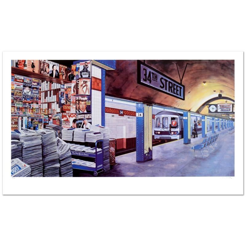 "My Underground: 34th St Station" is a limited edition serigraph on art paper by Ken Keeley, numbered and hand signed by the artist! Measures Approx. 50" x 30" (with border), 46" x 24" (image).
