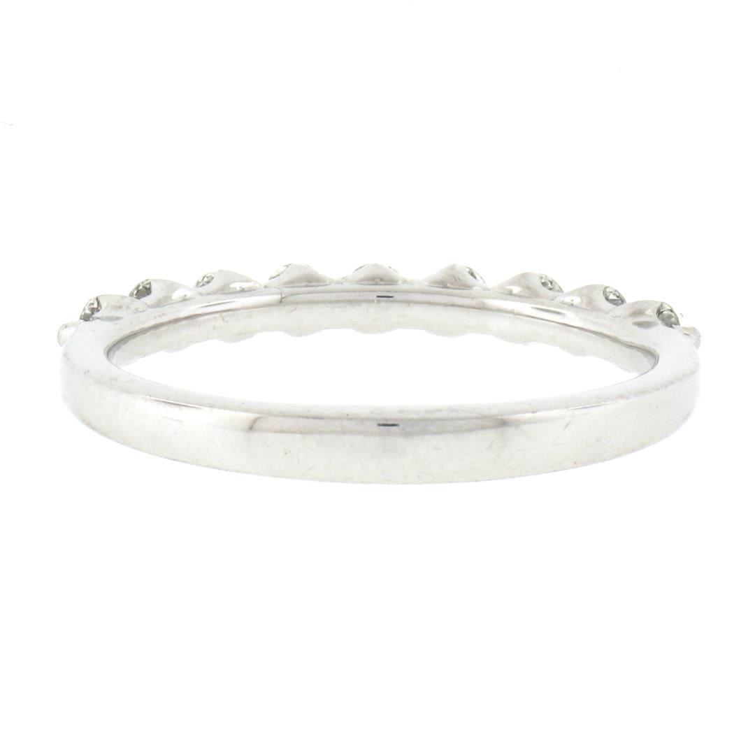 A new solid 14k white gold band ring, with 9 round brilliant cut natural diamonds (G/H - VS1/VS2 ; 0.36ctw). The ring is size 6.0, weighs a total of 2.75 grams, and measures 2.4mm wide.