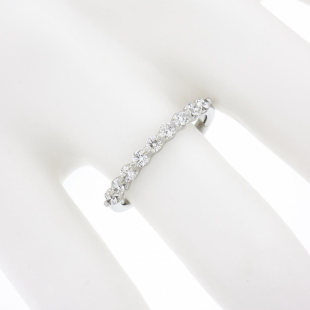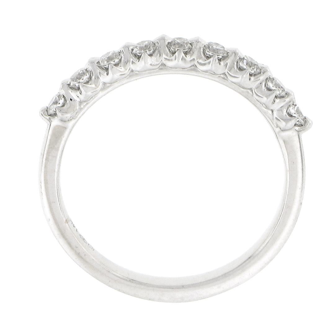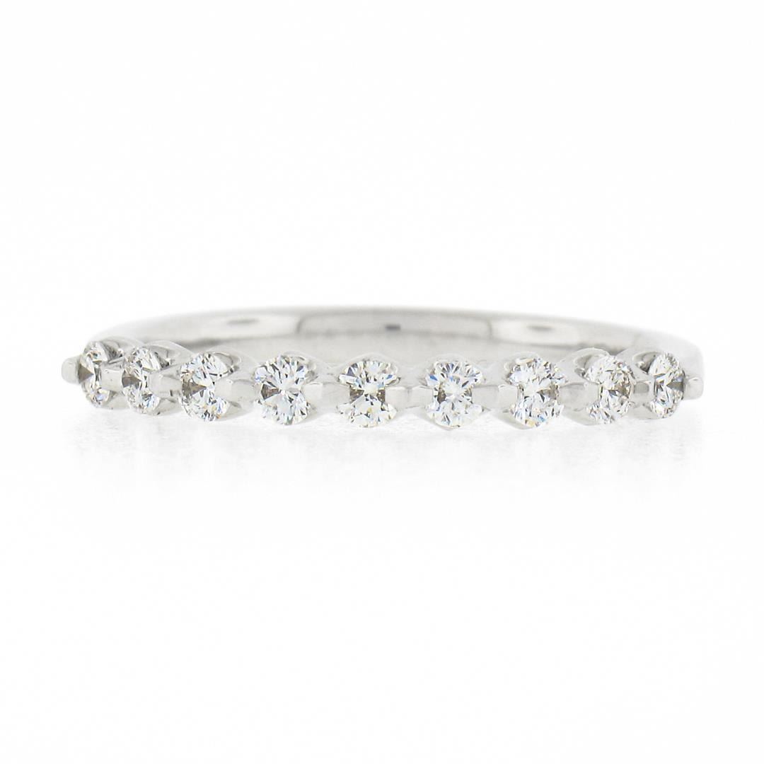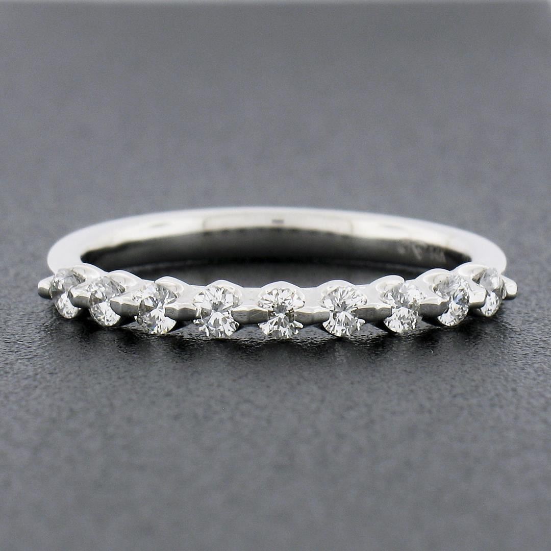 A new solid 14k white gold band ring, with 9 round brilliant cut natural diamonds (G/H - VS1/VS2 ; 0.36ctw). The ring is size 6.0, weighs a total of 2.75 grams, and measures 2.4mm wide.