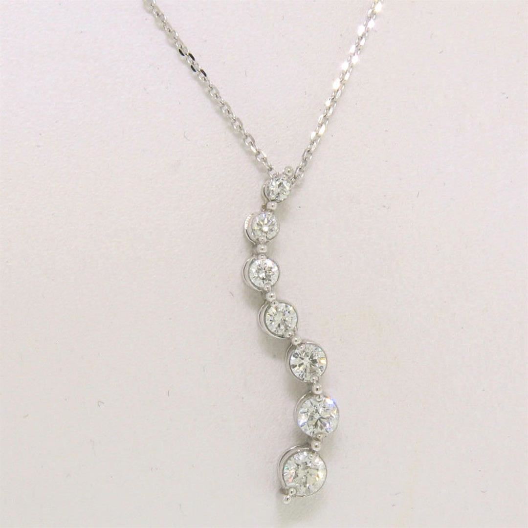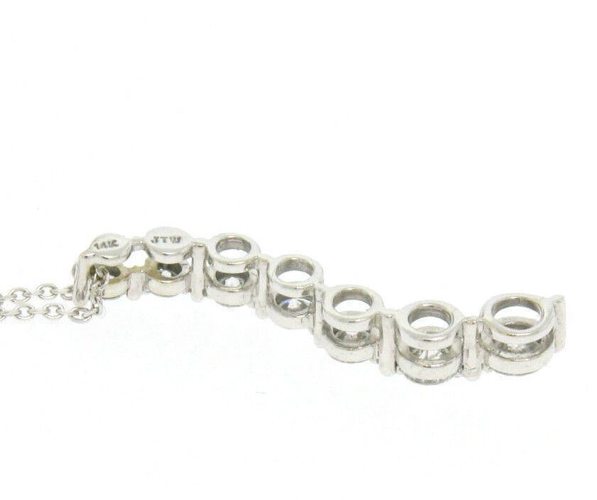 NEW 14K White Gold 0.50ctw 7 Round Diamond Wavy Journey Pendant w/ 16" WG Chain. Please see photos and description for all available information. A new solid 14k white gold wavy journey pendant necklace, featuring 7 round brilliant cut natural diamonds (F